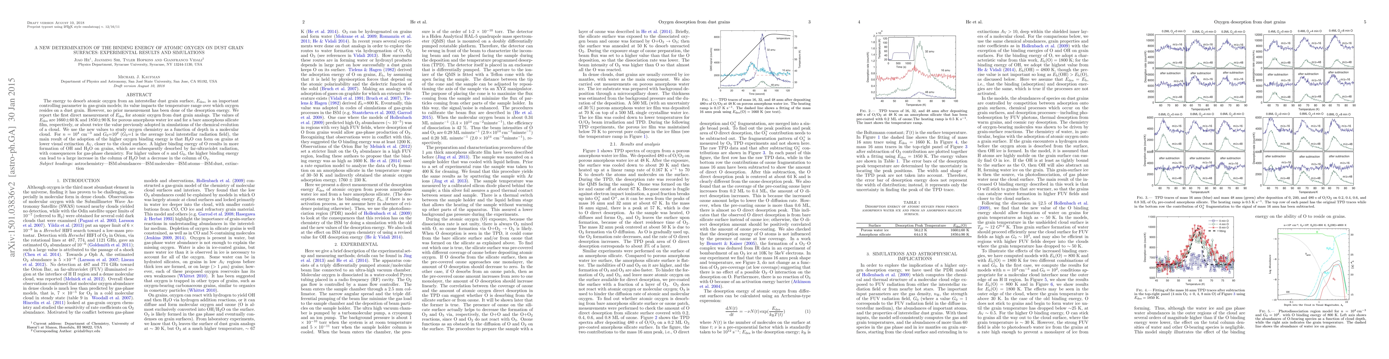 The energy to desorb atomic oxygen from an interstellar dust grain surface, $E_{\rm des}$, is an important controlling parameter in gas-grain models; its value impacts the temperature range over which oxygen resides on a dust grain. However, no prior measurement has been done of the desorption energy. We report the first direct measurement of $E_{\rm des}$ for atomic oxygen from dust grain analogs. The values of $E_{\rm des}$ are $1660\pm 60$~K and $1850\pm 90$~K for porous amorphous water ice and for a bare amorphous silicate film, respectively, or about twice the value previously adopted in simulations of the chemical evolution of a cloud. We use the new values to study oxygen chemistry as a function of depth in a molecular cloud. For $n=10^4$ cm$^{-3}$ and $G_0$=10$^2$ ($G_0$=1 is the average local interstellar radiation field), the main result of the adoption of the higher oxygen binding energy is that H$_2$O can form on grains at lower visual extinction $A_{\rm V}$, closer to the cloud surface. A higher binding energy of O results in more formation of OH and H$_2$O on grains, which are subsequently desorbed by FUV radiation, with consequences for gas-phase chemistry. For higher values of $n$ and $G_0$, the higher binding energy can lead to a large increase in the column of H$_2$O but a decrease in the column of O$_2$.