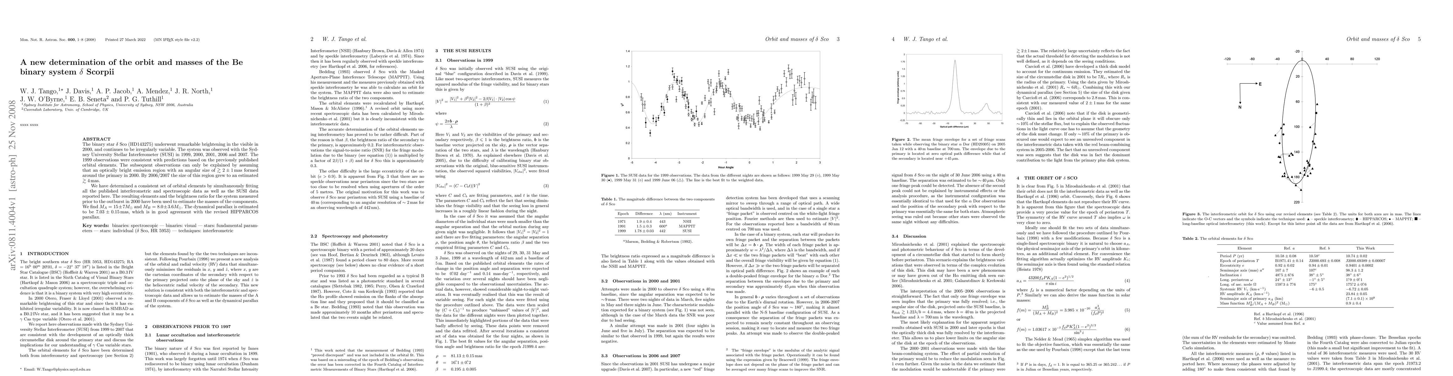 The binary star delta Sco (HD143275) underwent remarkable brightening in the visible in 2000, and continues to be irregularly variable. The system was observed with the Sydney University Stellar Interferometer (SUSI) in 1999, 2000, 2001, 2006 and 2007. The 1999 observations were consistent with predictions based on the previously published orbital elements. The subsequent observations can only be explained by assuming that an optically bright emission region with an angular size of > 2 +/- 1 mas formed around the primary in 2000. By 2006/2007 the size of this region grew to an estimated > 4 mas. We have determined a consistent set of orbital elements by simultaneously fitting all the published interferometric and spectroscopic data as well as the SUSI data reported here. The resulting elements and the brightness ratio for the system measured prior to the outburst in 2000 have been used to estimate the masses of the components. We find Ma = 15 +/- 7 Msun and Mb = 8.0 +/- 3.6 Msun. The dynamical parallax is estimated to be 7.03 +/- 0.15 mas, which is in good agreement with the revised HIPPARCOS parallax.