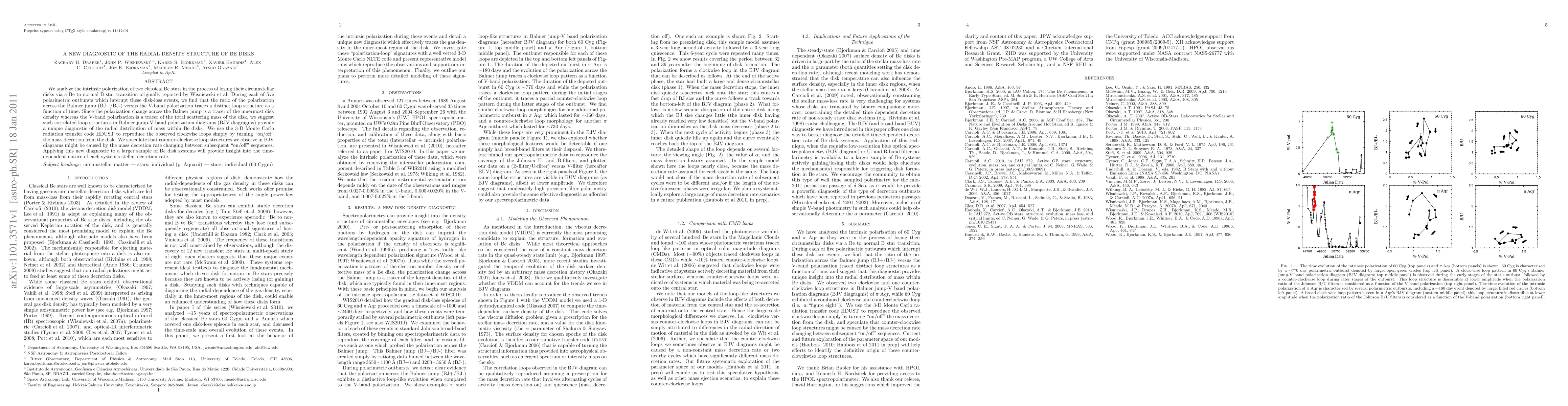 Researchers created a new diagnostic tool to study the density structure of Be disks, using polarimetric outbursts to track changes in disk mass distribution over time.