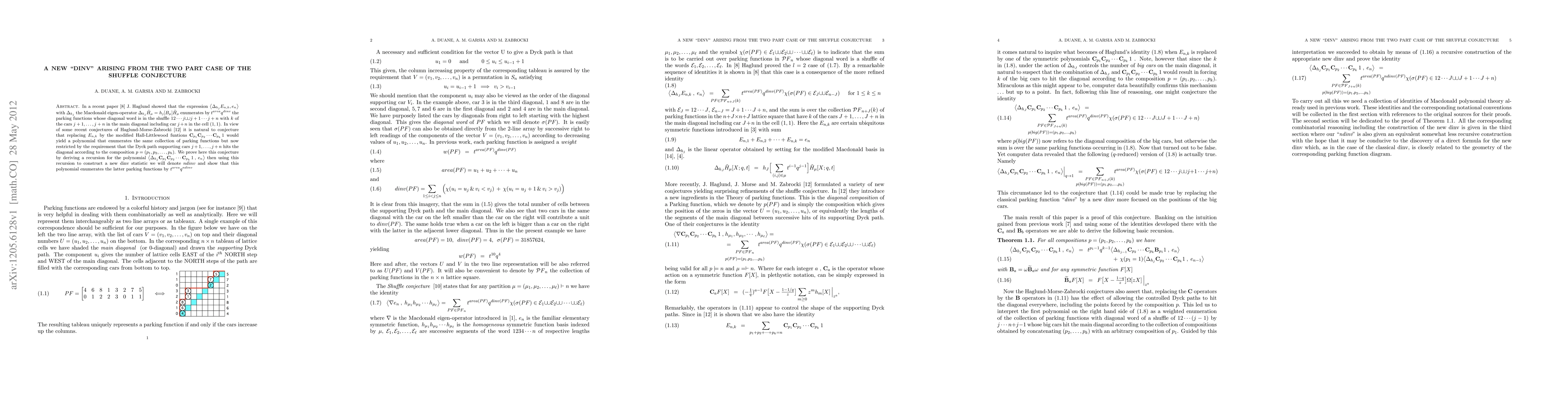 In a recent paper J. Haglund showed that a certain symmetric function expresion enumerates by t^{area} q^{dinv} of the parking functions whose diagonal word is in the shuffle of 12...j and j+1...j+n with k of the cars j+1,...,j+n in the main diagonal including car j+n in the cell (1,1). In view of some recent conjectures of Haglund-Morse-Zabrocki it is natural to conjecture that replacing E_{n,k} by the modified Hall-Littlewood functions would yield a polynomial that enumerates the same collection of parking functions but now restricted by the requirement that the Dyck path supporting cars j+1,...,j+n hits the diagonal according to the composition p=(p_1,p_2,...,p_k). We prove here this conjecture by deriving a recursion for the symmetric function expression then using this recursion to construct a new dinv statistic we will denote ndinv and show that this polynomial enumerates the latter parking functions by t^{area} q^{ndinv}.