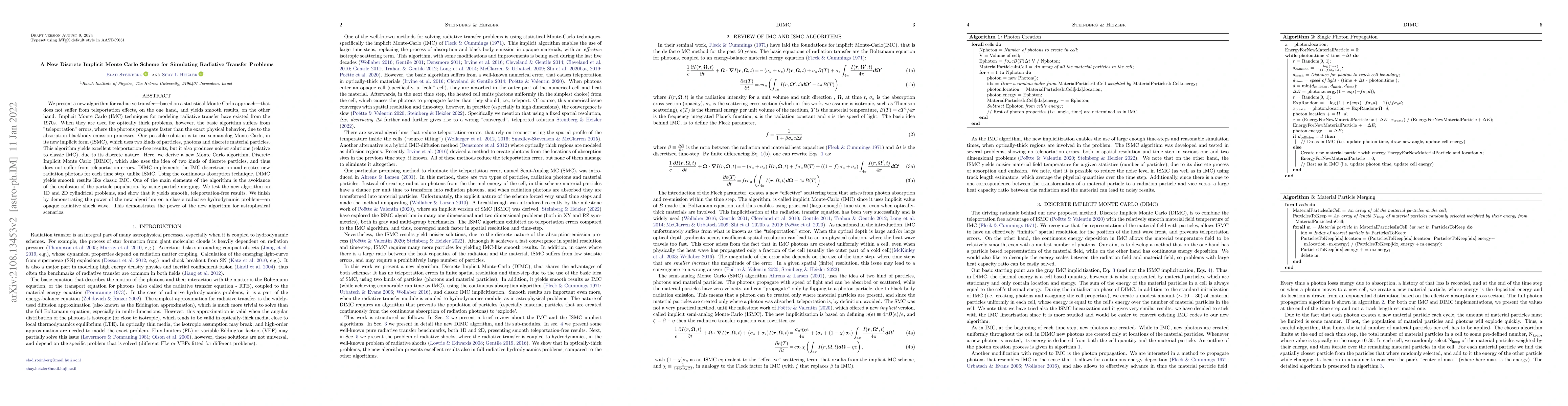 This paper introduces a new Discrete Implicit Monte Carlo (DIMC) scheme for simulating radiative transfer, which avoids teleportation errors and produces smooth results by merging particles and using continuous absorption techniques. The algorithm is tested on 1D and 2D problems, showing its effectiveness in astrophysical scenarios.