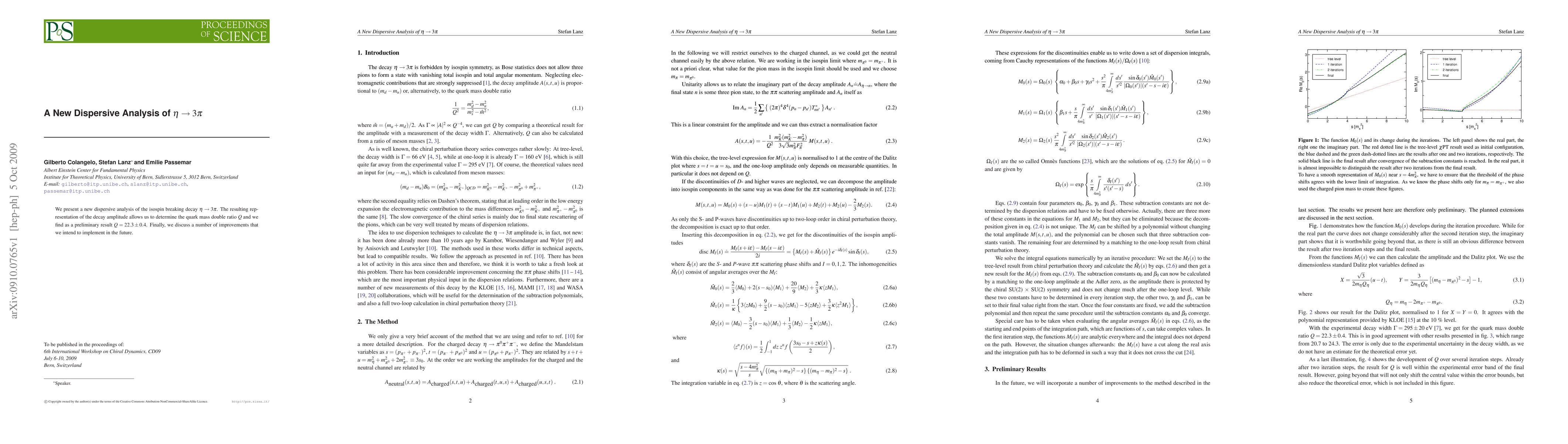 We present a new dispersive analysis of the isospin breaking decay eta --> 3 pi. The resulting representation of the decay amplitude allows us to determine the quark mass double ratio Q and we find as a preliminary result Q = 22.3 +/- 0.4. Finally, we discuss a number of improvements that we intend to implement in the future.