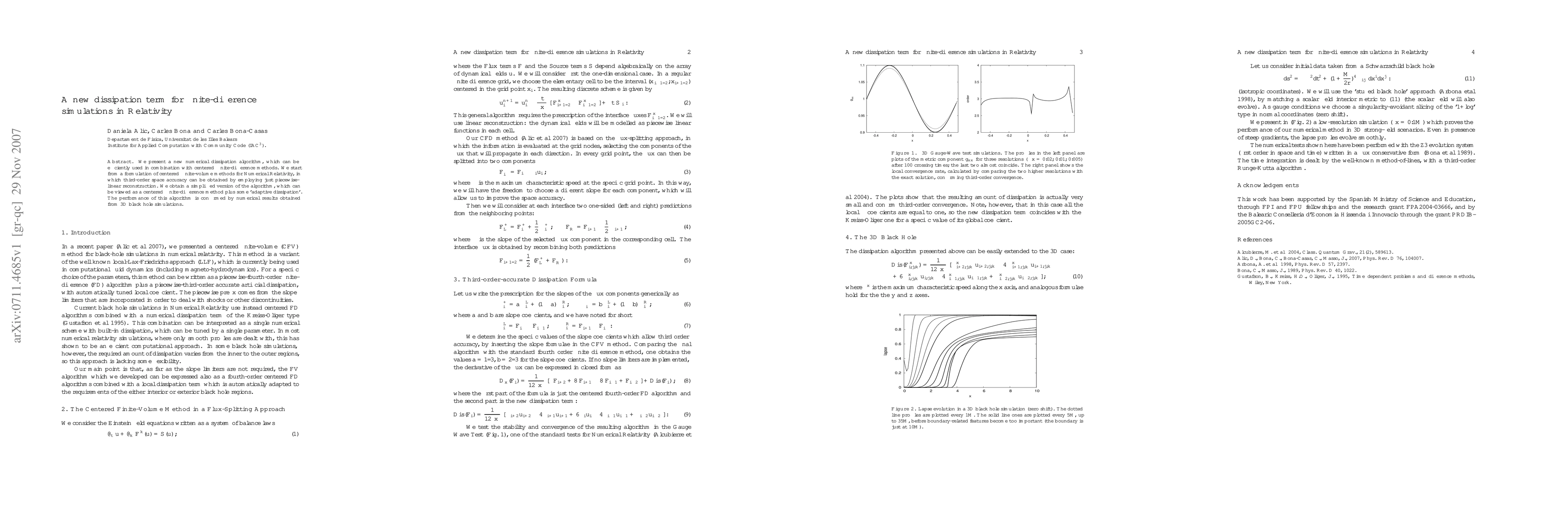 We present a new numerical dissipation algorithm, which can be efficiently used in combination with centered finite-difference methods. We start from a formulation of centered finite-volume methods for Numerical Relativity, in which third-order space accuracy can be obtained by employing just piecewise-linear reconstruction. We obtain a simplified version of the algorithm, which can be viewed as a centered finite-difference method plus some 'adaptive dissipation'. The performance of this algorithm is confirmed by numerical results obtained from 3D black hole simulations.