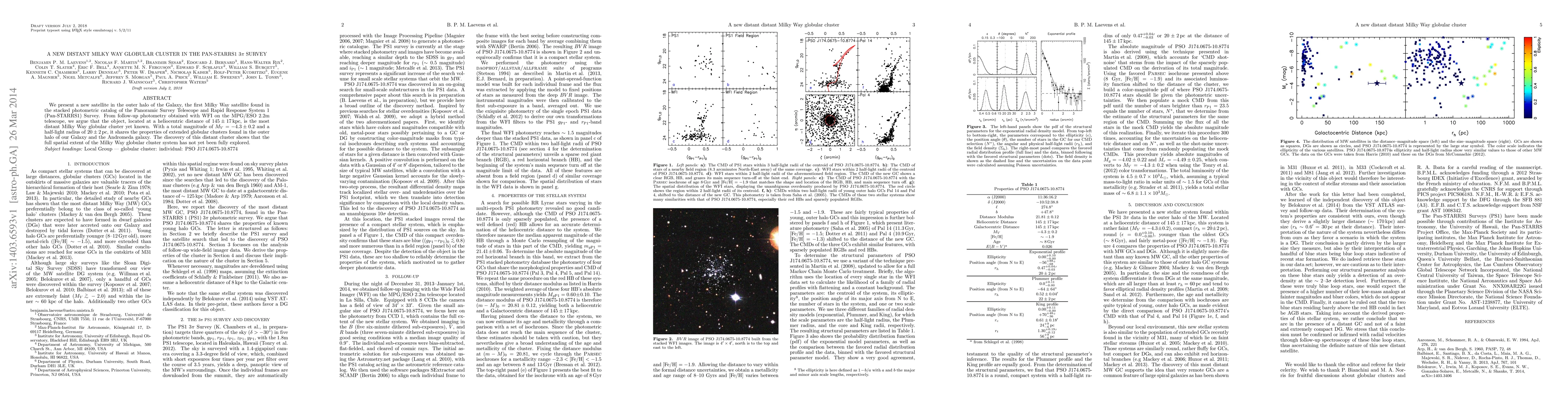 We present a new satellite in the outer halo of the Galaxy, the first Milky Way satellite found in the stacked photometric catalog of the Panoramic Survey Telescope and Rapid Response System 1 (Pan-STARRS1) Survey. From follow-up photometry obtained with WFI on the MPG/ESO 2.2m telescope, we argue that the object, located at a heliocentric distance of 145+/-17 kpc, is the most distant Milky Way globular cluster yet known. With a total magnitude of M_V=-4.3+/-0.2 and a half-light radius of 20+/-2 pc, it shares the properties of extended globular clusters found in the outer halo of our Galaxy and the Andromeda galaxy. The discovery of this distant cluster shows that the full spatial extent of the Milky Way globular cluster system has not yet been fully explored.