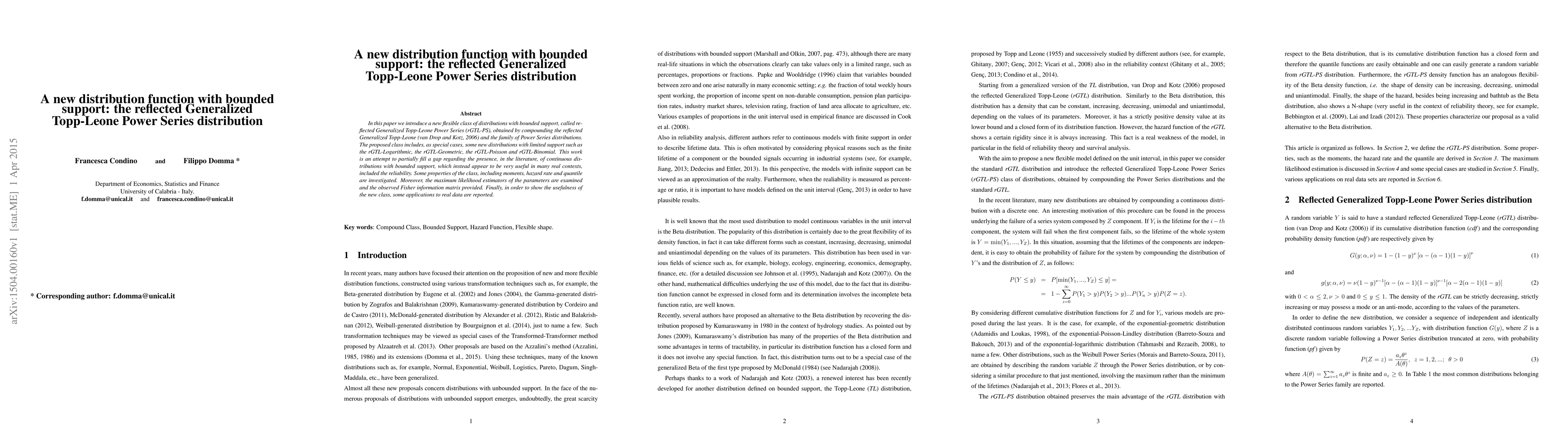 In this paper we introduce a new flexible class of distributions with bounded support, called reflected Generalized Topp-Leone Power Series (rGTL-PS), obtained by compounding the reflected Generalized Topp-Leone (van Drop and Kotz, 2006) and the family of Power Series distributions. The proposed class includes, as special cases, some new distributions with limited support such as the rGTL-Logarithmic, the rGTL-Geometric, the rGTL-Poisson and rGTL-Binomial. This work is an attempt to partially fill a gap regarding the presence, in the literature, of continuous distributions with bounded support, which instead appear to be very useful in many real contexts, included the reliability. Some properties of the class, including moments, hazard rate and quantile are investigated. Moreover, the maximum likelihood estimators of the parameters are examined and the observed Fisher information matrix provided. Finally, in order to show the usefulness of the new class, some applications to real data are reported.