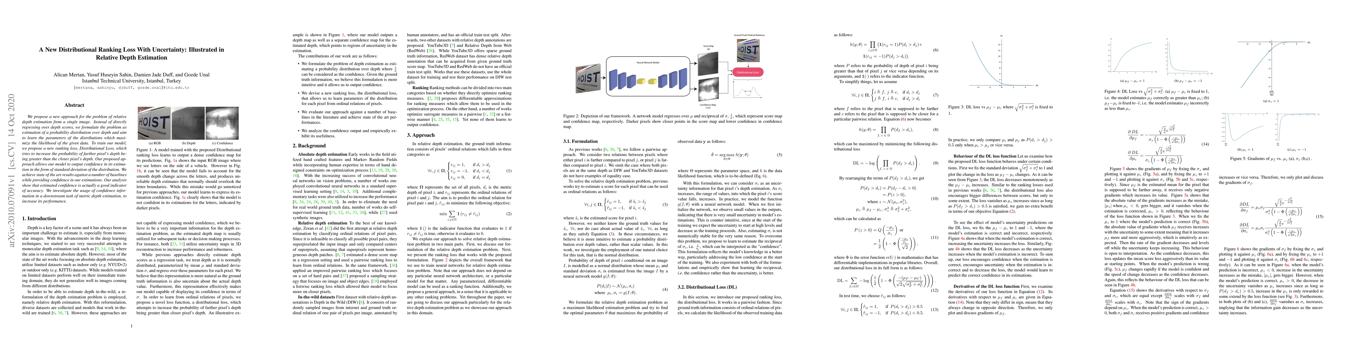 We propose a new approach for the problem of relative depth estimation from a single image. Instead of directly regressing over depth scores, we formulate the problem as estimation of a probability distribution over depth and aim to learn the parameters of the distributions which maximize the likelihood of the given data. To train our model, we propose a new ranking loss, Distributional Loss, which tries to increase the probability of farther pixel's depth being greater than the closer pixel's depth. Our proposed approach allows our model to output confidence in its estimation in the form of standard deviation of the distribution. We achieve state of the art results against a number of baselines while providing confidence in our estimations. Our analysis show that estimated confidence is actually a good indicator of accuracy. We investigate the usage of confidence information in a downstream task of metric depth estimation, to increase its performance.