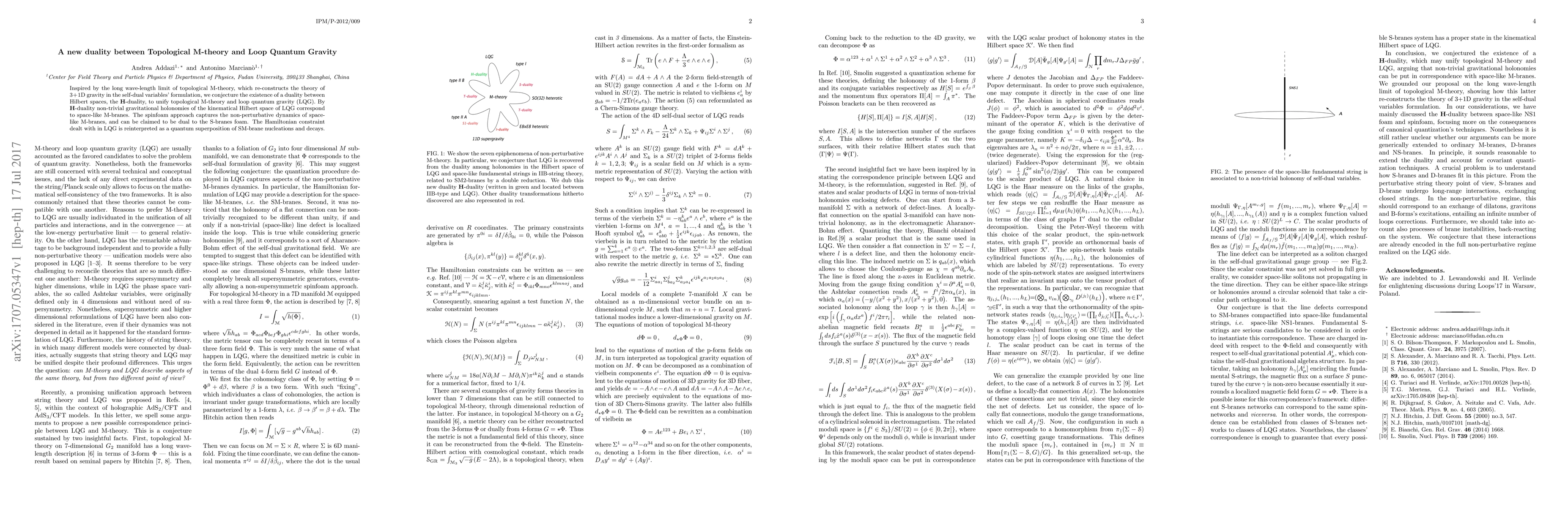 This paper proposes a new duality, called ${\bf H}$-duality, that conjectures a unification between topological M-theory and loop quantum gravity, suggesting that non-trivial gravitational holonomies in LQG correspond to space-like M-branes and that the spinfoam approach captures the dynamics of these M-branes.