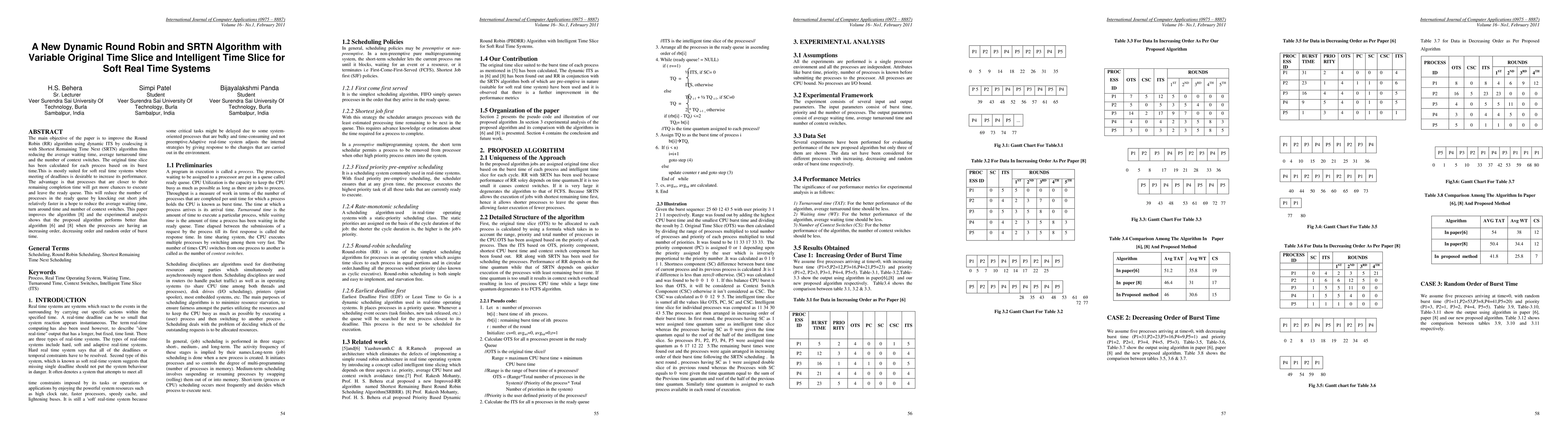 This paper proposes a new dynamic Round Robin (RR) algorithm combined with Shortest Remaining Time Next (SRTN) to reduce average waiting time, turnaround time, and context switches in soft real-time systems. The algorithm uses variable original time slices based on process burst times, prioritizing shorter jobs to improve performance and meet deadlines.