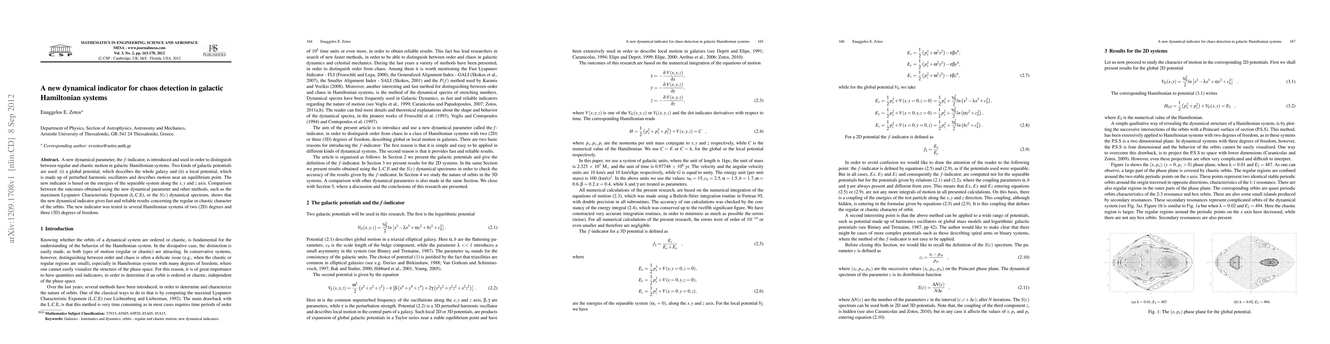 A new dynamical indicator, the f-indicator, is used to distinguish between regular and chaotic motion in galactic Hamiltonian systems, offering fast and reliable results for 2D and 3D systems.