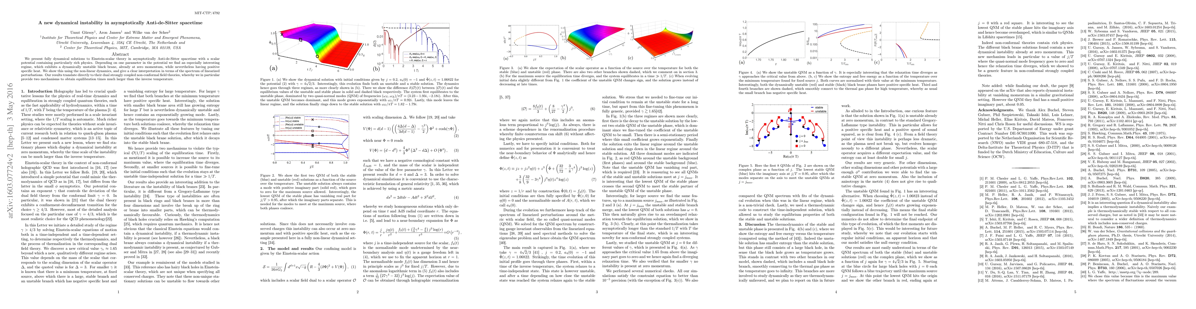 We present fully dynamical solutions to Einstein-scalar theory in asymptotically Anti-de-Sitter spacetime with a scalar potential containing particularly rich physics. Depending on one parameter in the potential we find an especially interesting regime, which exhibits a thermodynamically stable, but dynamically unstable black brane, even at zero momentum. We show this using the non-linear dynamics, and give a clear interpretation in terms of the spectrum of linearized perturbations. Our results translate directly to their dual strongly coupled non-conformal field theories.