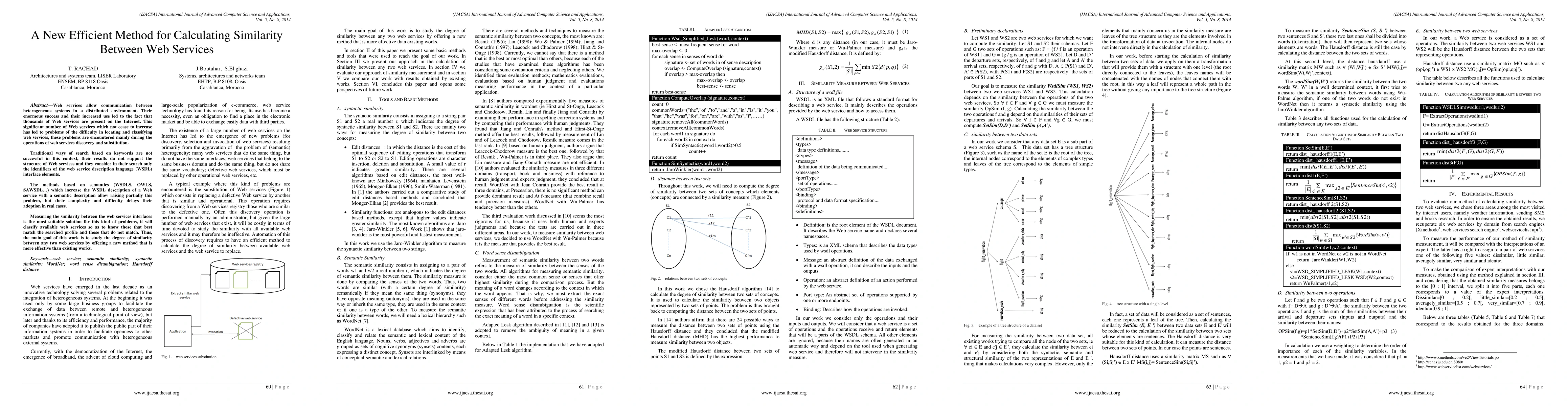 This paper proposes a new efficient method for calculating the similarity between web services to address the challenges of locating and classifying services in a distributed environment. The proposed method aims to outperform existing techniques by providing a more effective way to classify web services based on their interfaces.