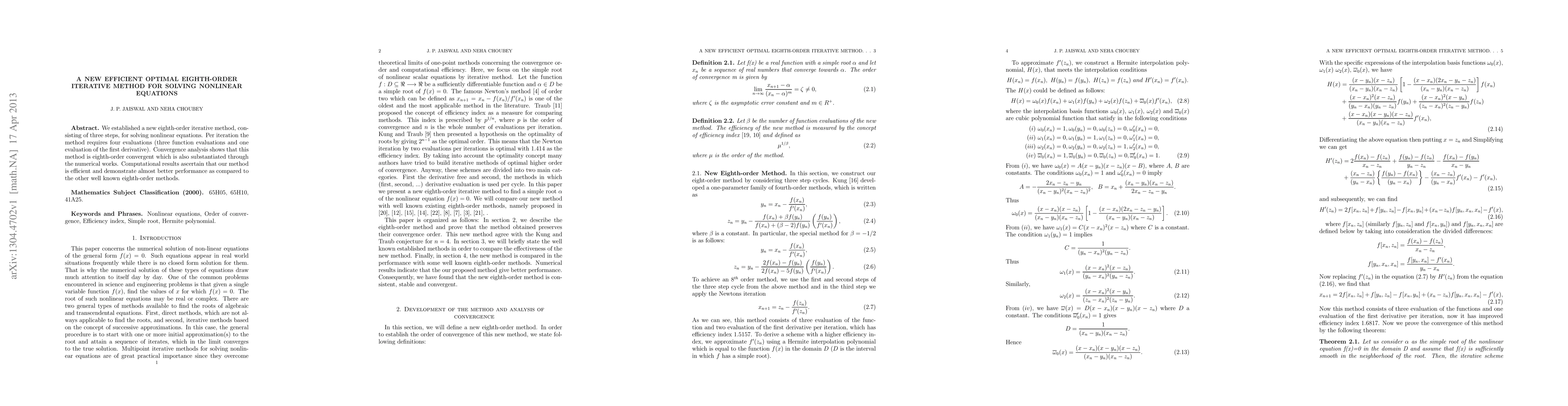 A new eighth-order iterative method for solving nonlinear equations has been developed, showing efficient performance and demonstrating better results compared to existing methods, with convergence analysis confirming its eighth-order accuracy.