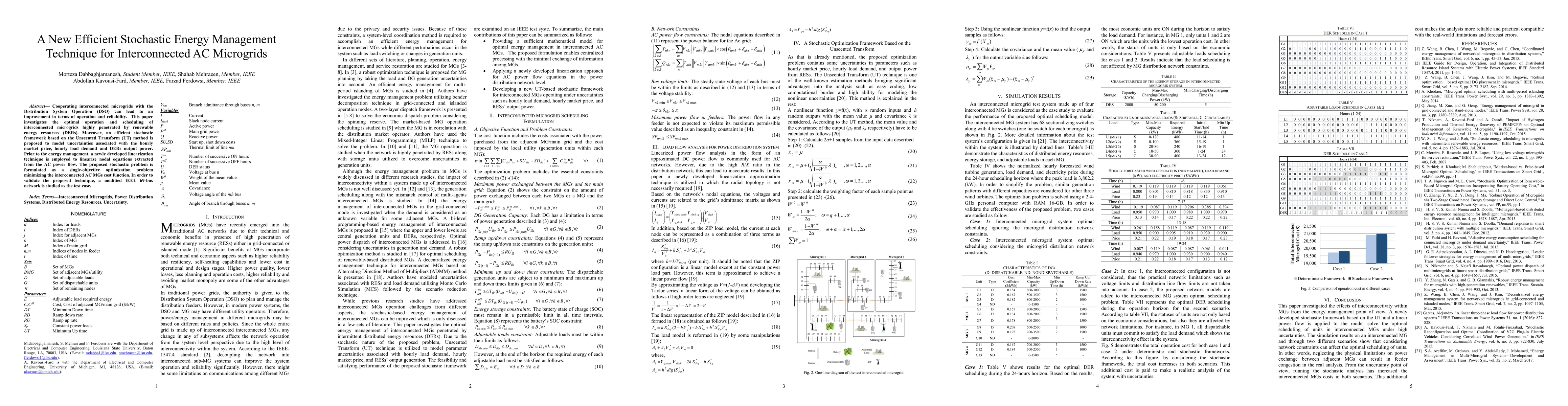 This paper proposes an efficient stochastic energy management technique for interconnected AC microgrids, focusing on optimal operation and scheduling amidst high renewable energy penetration. It introduces a novel linearization method for AC power flow and utilizes the Unscented Transform to handle uncertainties in market prices, load demand, and DER output power, aiming to minimize operational costs.