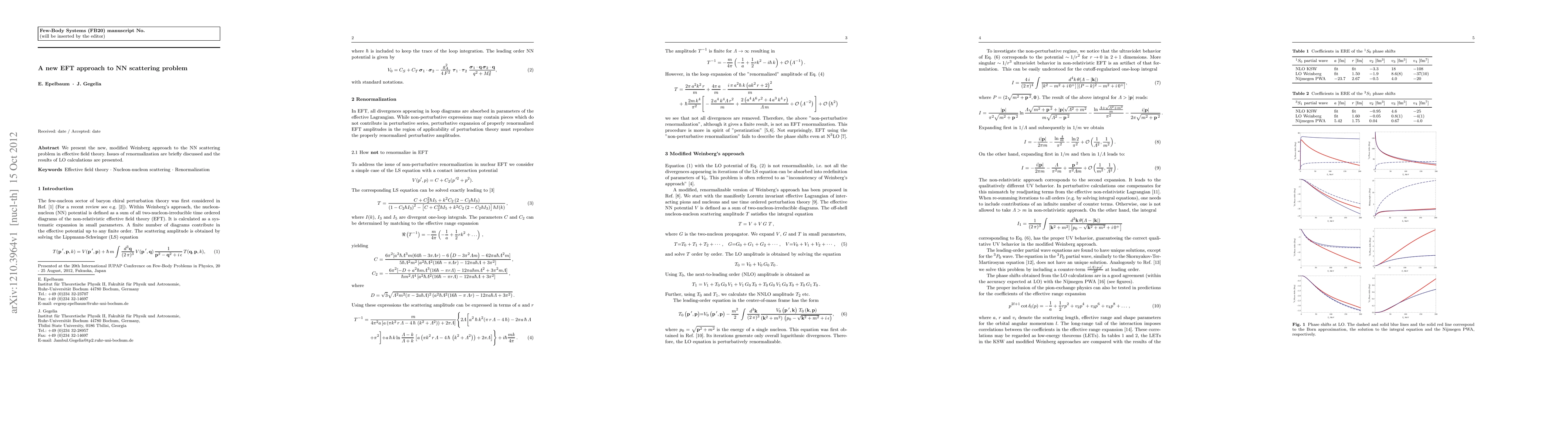 We present the new, modified Weinberg approach to the NN scattering problem in effective field theory. Issues of renormalization are briefly discussed and the results of LO calculations are presented.