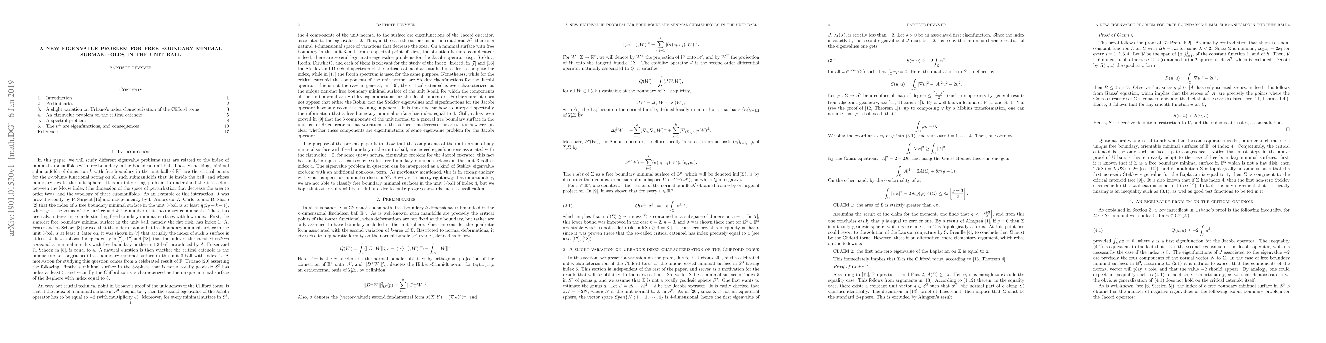 The purpose of the present paper is to show that the components of the unit normal of any minimal surface with free boundary in the unit ball, are eigenfunctions associated with the eigenvalue $-2$, for some (new) natural eigenvalue problem for the Jacobi operator; this fact has analytic (spectral) consequences for free boundary minimal surfaces in the unit $3$-ball of index $4$, and might prove useful in order to characterize these. This is also in strong analogy with the case of minimal surfaces in $S^3$.