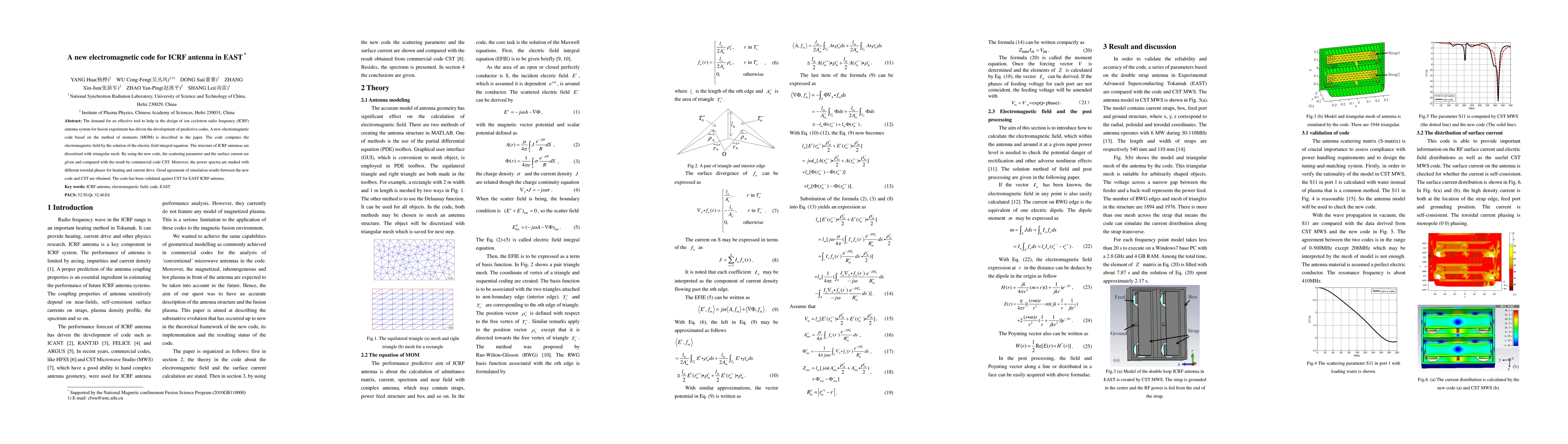 A new electromagnetic code based on the method of moments was developed to aid in ICRF antenna design for fusion experiments, with good agreement obtained against a commercial code.