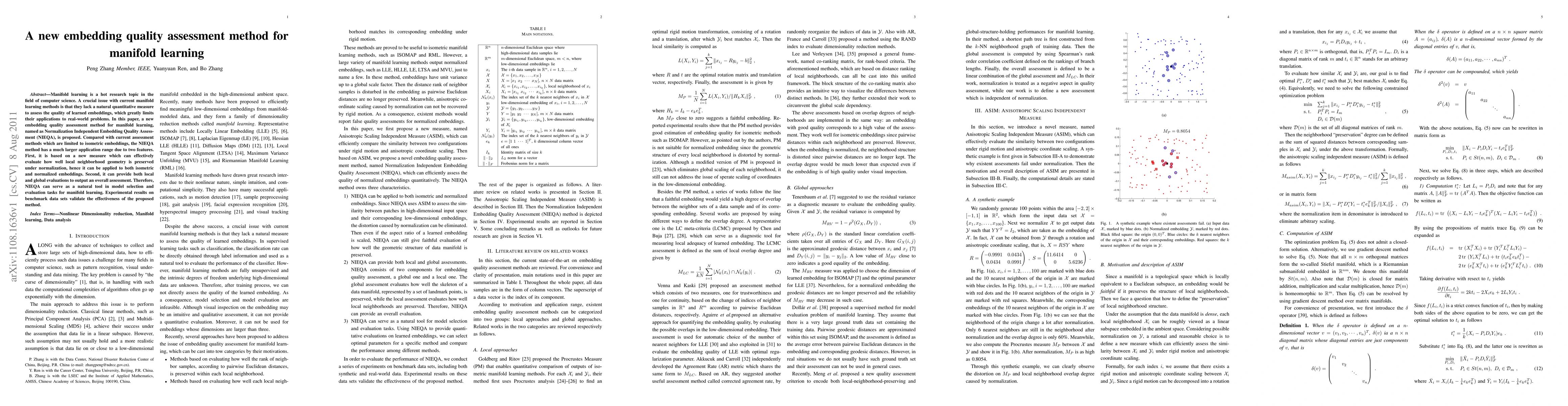 This paper introduces NIEQA, a new method for assessing the quality of embeddings in manifold learning, capable of evaluating both isometric and normalized embeddings. Unlike existing methods, NIEQA provides both local and global assessments, enhancing its applicability and effectiveness in model selection and evaluation.