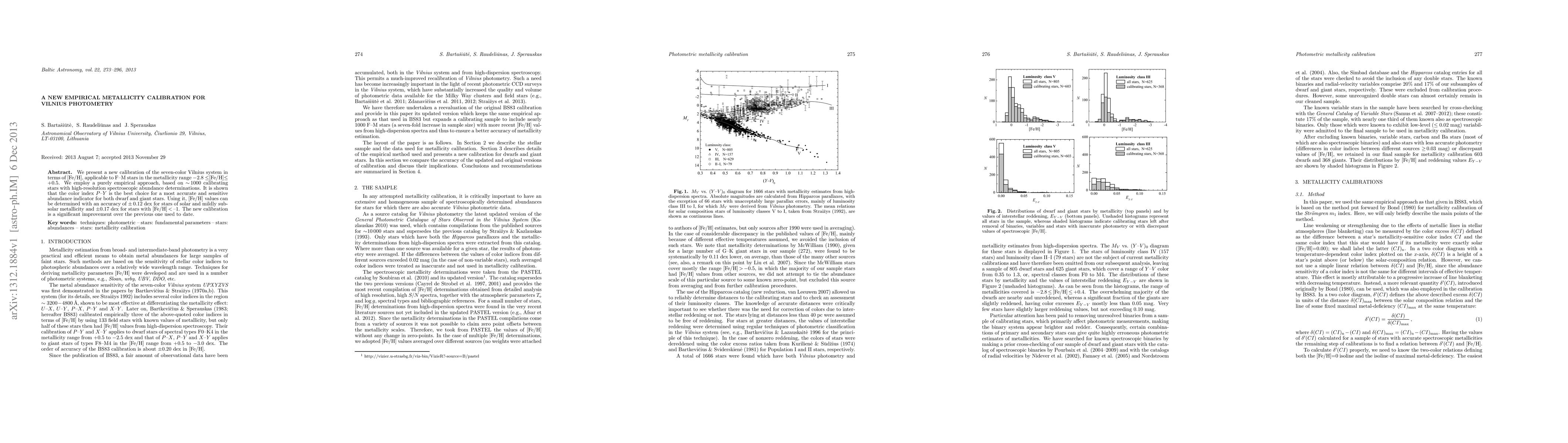 This paper presents a new empirical calibration for the Vilnius seven-color photometric system in terms of [Fe/H], improving upon previous methods. The color index P-Y is identified as the most accurate indicator of metallicity for F-M stars, achieving an accuracy of $\pm$0.12 dex for solar and mildly sub-solar stars and $\pm$0.17 dex for more metal-poor stars.