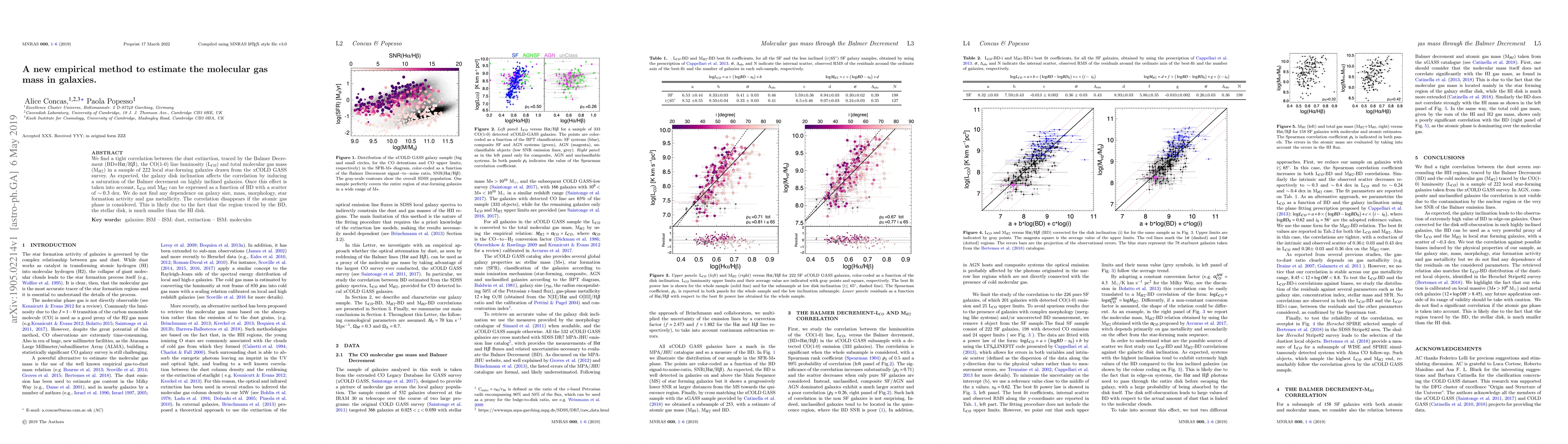 We find a tight correlation between the dust extinction, traced by the Balmer Decrement (BD$=$H$\alpha$/H$\beta$), the CO(1-0) line luminosity (L$_{CO}$) and total molecular gas mass (M$_{H2}$) in a sample of $222$ local star-forming galaxies drawn from the xCOLD GASS survey. As expected, the galaxy disk inclination affects the correlation by inducing a saturation of the Balmer decrement on highly inclined galaxies. Once this effect is taken into account, L$_{CO}$ and M$_{H2}$ can be expressed as a function of BD with a scatter of $\sim 0.3$ dex. We do not find any dependence on galaxy size, mass, morphology, star formation activity, and gas metallicity. The correlation disappears if the atomic gas phase is considered. This is likely due to the fact that the region traced by the BD, the stellar disk, is much smaller than the HI disk.