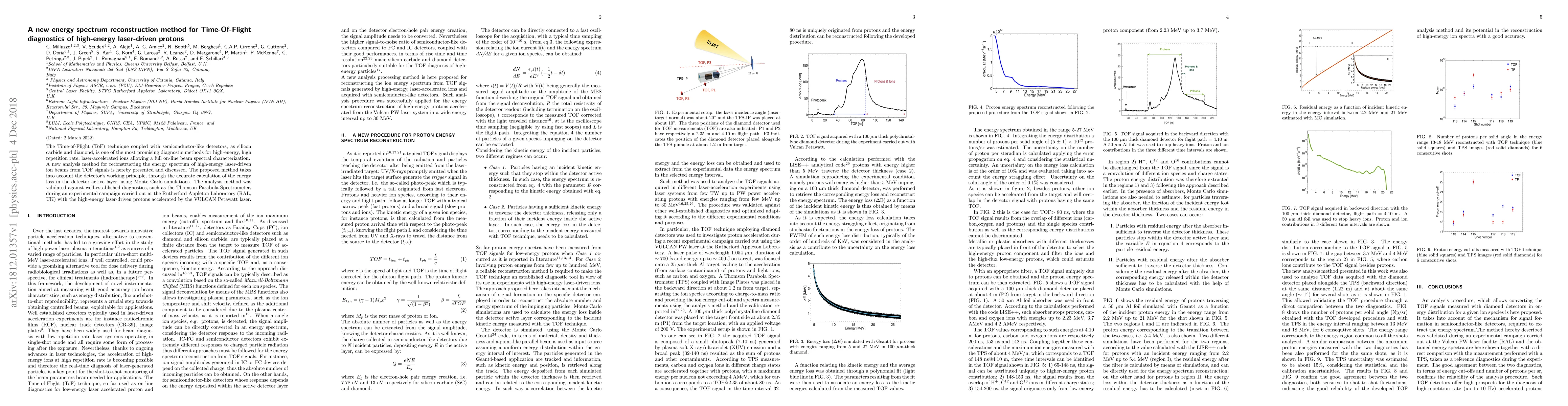 This paper introduces a novel method for reconstructing the energy spectrum of high-energy laser-driven protons using Time-of-Flight diagnostics with semiconductor detectors. The method accurately calculates energy loss in the detector's active layer via Monte Carlo simulations and was validated against established diagnostics at the Rutherford Appleton Laboratory.