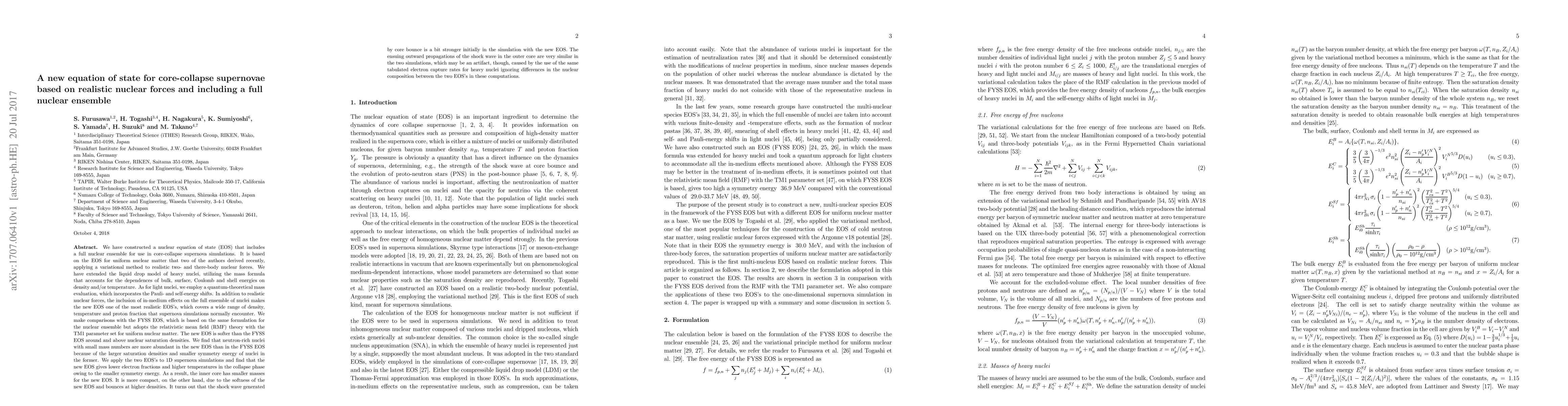 Researchers created a new equation of state for core-collapse supernovae simulations that includes realistic nuclear forces and a full nuclear ensemble, resulting in lower electron fractions and higher temperatures in the collapse phase.