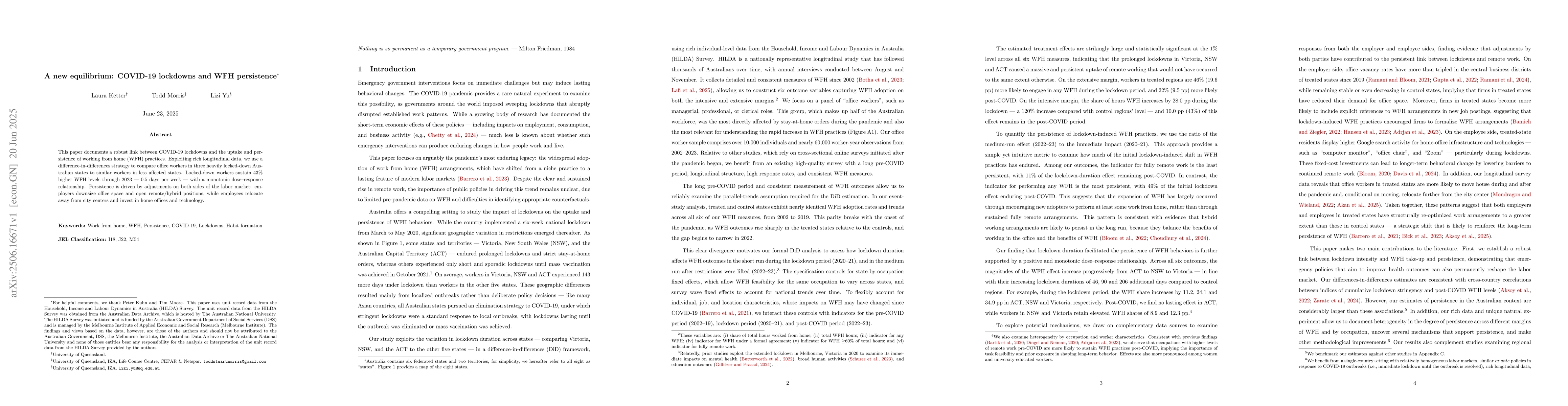 This paper documents a robust link between COVID-19 lockdowns and the uptake and persistence of working from home (WFH) practices. Exploiting rich longitudinal data, we use a difference-in-differences strategy to compare office workers in three heavily locked-down Australian states to similar workers in less affected states. Locked-down workers sustain 43% higher WFH levels through 2023 - 0.5 days per week - with a monotonic dose-response relationship. Persistence is driven by adjustments on both sides of the labor market: employers downsize office space and open remote or hybrid positions, while employees relocate away from city centers and invest in home offices and technology.