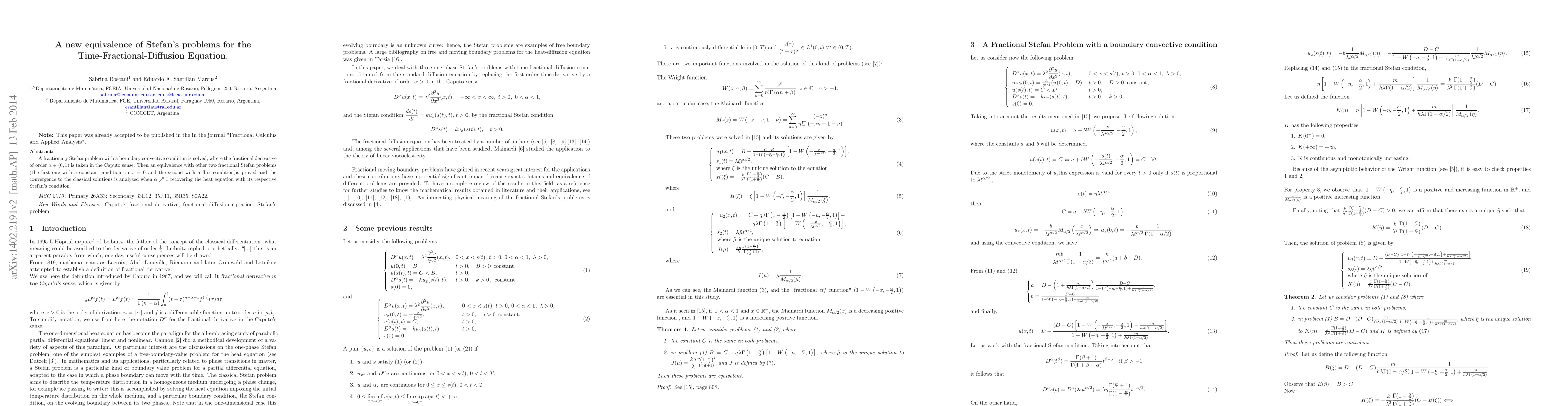 A fractional Stefan problem with a boundary convective condition is solved, where the fractional derivative of order $ \alpha \in (0,1) $ is taken in the Caputo sense. Then an equivalence with other two fractional Stefan problems (the first one with a constant condition on $ x = 0 $ and the second with a flux condition)is proved and the convergence to the classical solutions is analyzed when $ \alpha \nearrow 1$ recovering the heat equation with its respective Stefan condition.