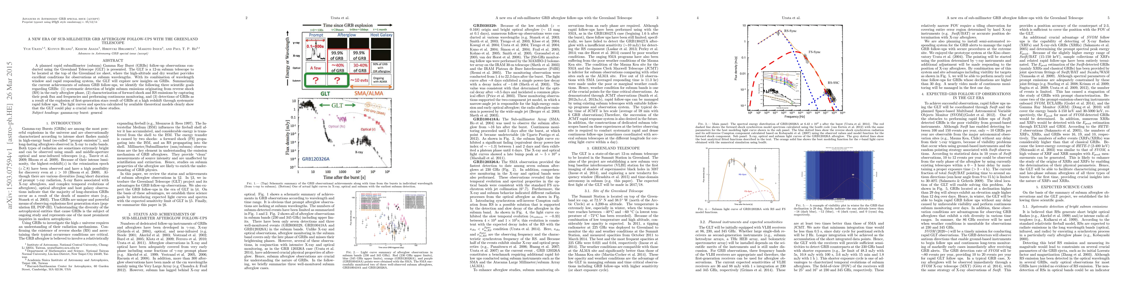 A planned rapid submillimeter (submm) Gamma Ray Burst (GRBs) follow-up observations conducted using the Greenland Telescope (GLT) is presented. The GLT is a 12-m submm telescope to be located at the top of the Greenland ice sheet, where the high-altitude and dry weather porvides excellent conditions for observations at submm wavelengths. With its combination of wavelength window and rapid responding system, the GLT will explore new insights on GRBs. Summarizing the current achievements of submm GRB follow-ups, we identify the following three scientific goals regarding GRBs: (1) systematic detection of bright submm emissions originating from reverse shock (RS) in the early afterglow phase, (2) characterization of forward shock and RS emissions by capturing their peak flux and frequencies and performing continuous monitoring, and (3) detections of GRBs as a result of the explosion of first-generation stars result of GRBs at a high redshift through systematic rapid follow ups. The light curves and spectra calculated by available theoretical models clearly show that the GLT could play a crucial role in these studies.