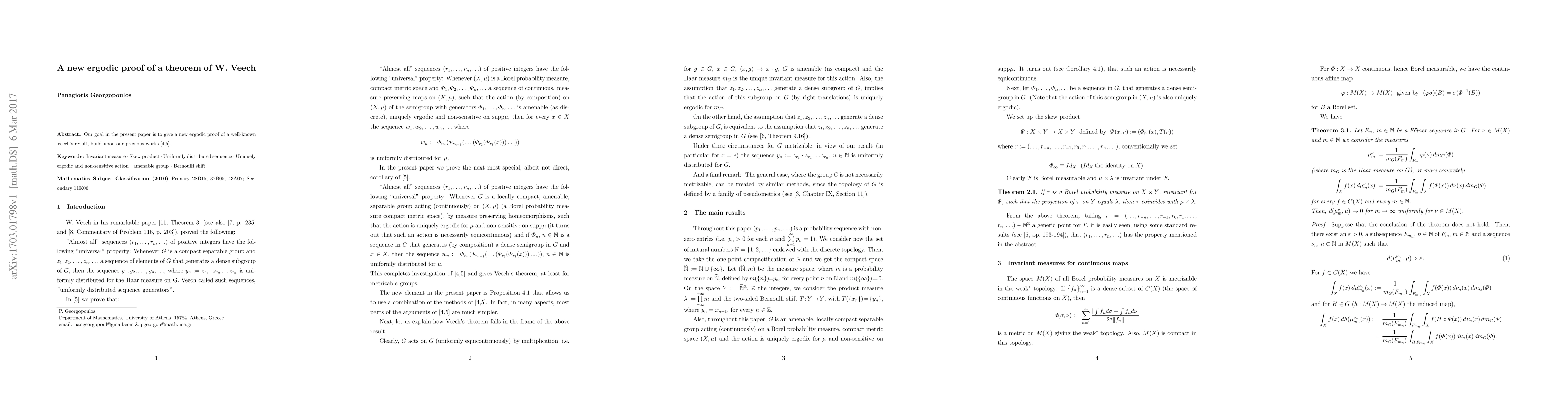 Our goal in the present paper is to give a new ergodic proof of a well-known Veech's result, build upon our previous works.