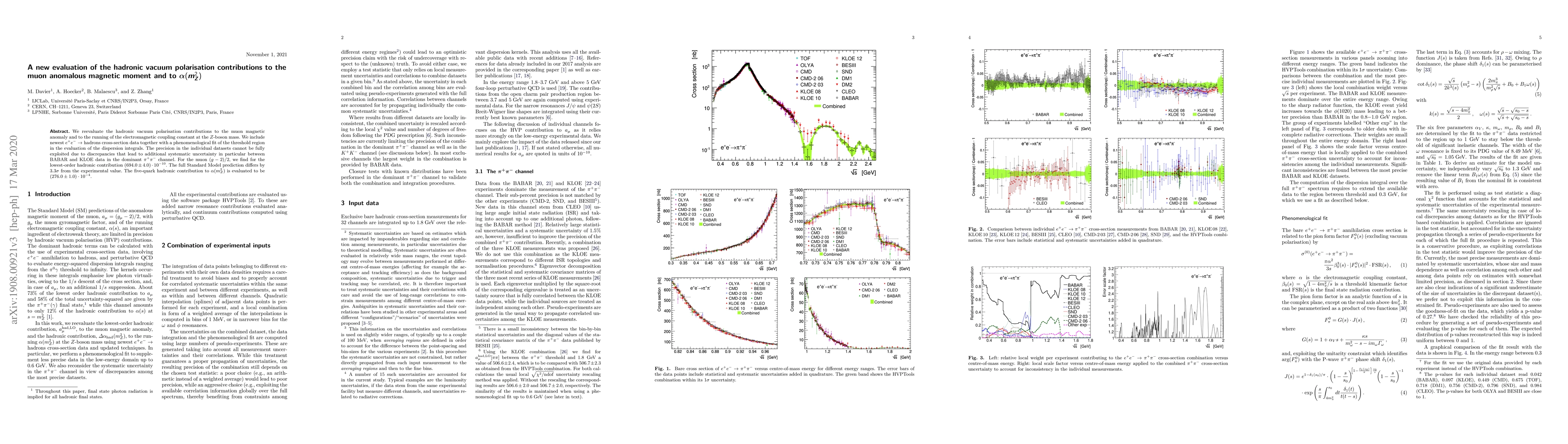 A reevaluation of hadronic vacuum polarisation contributions to the muon anomalous magnetic moment and Z-boson mass running reveals a discrepancy of 3.3sigma between full Standard Model predictions and experimental values.