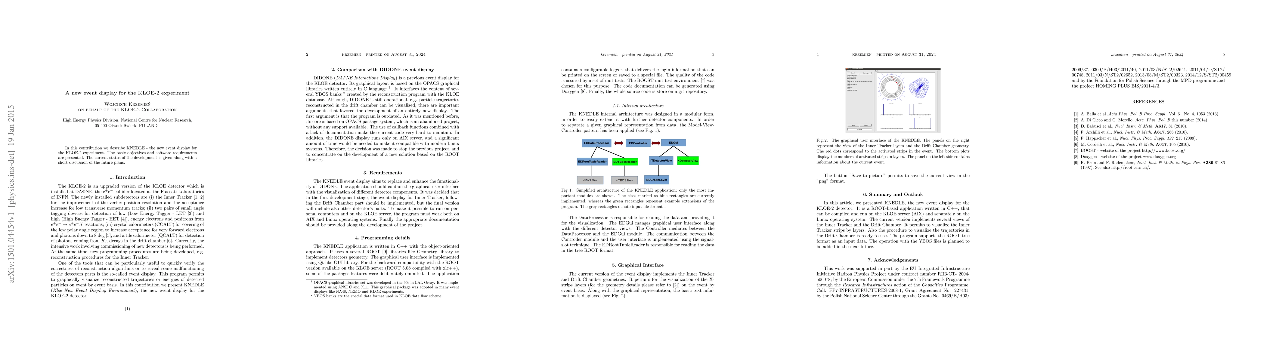 Researchers introduce KNEDLE, a new event display for the KLOE-2 experiment, providing an upgrade to the existing system with improved performance and capabilities.