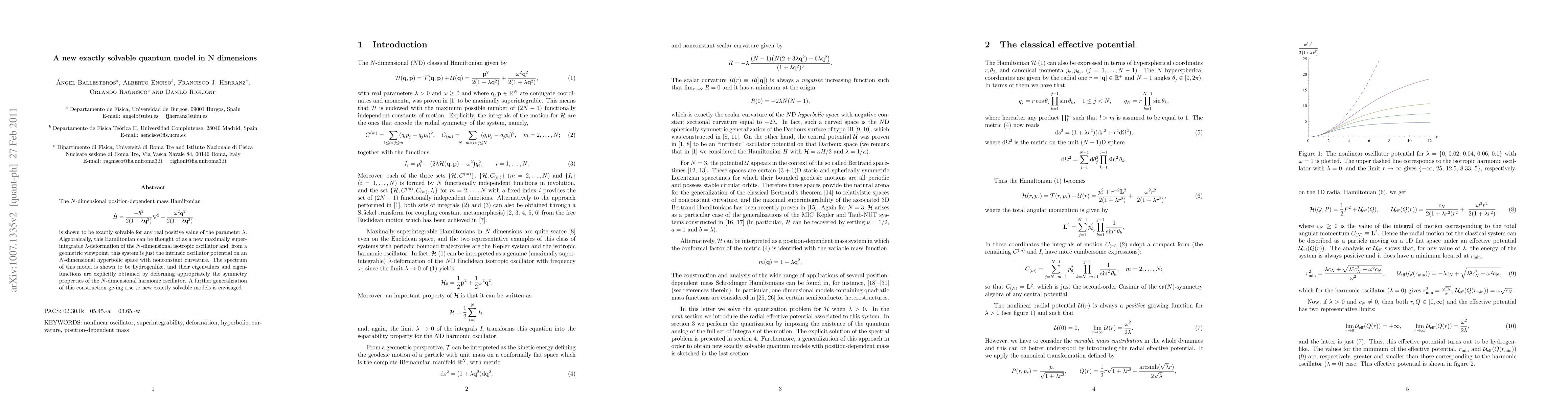 This research paper introduces a new exactly solvable quantum model in N dimensions with a parameter-driven mass Hamiltonian, leading to hydrogen-like spectrum with explicitly obtained eigenvalues and eigenfunctions.