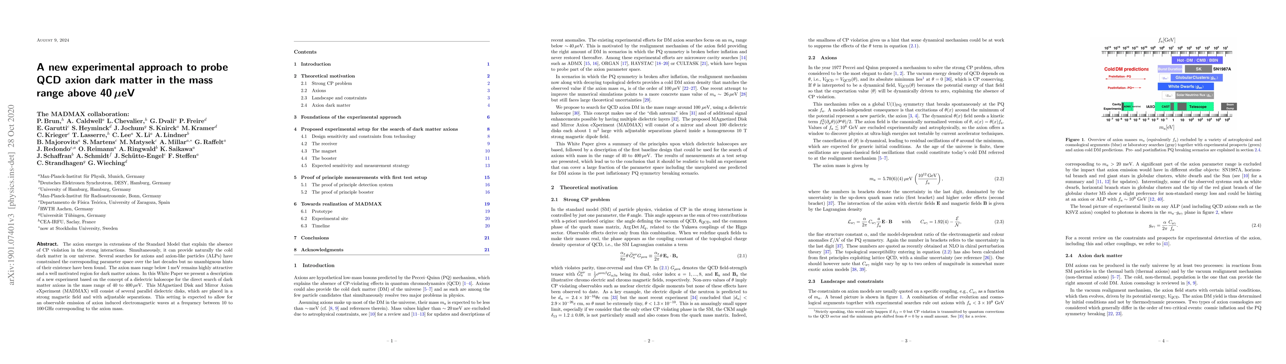 This paper introduces MADMAX, a novel experimental setup using dielectric haloscopes to search for QCD axion dark matter in the mass range of 40 to 400 $\mu$eV. The experiment aims to detect axion-induced electromagnetic waves in a strong magnetic field, offering a new approach to finding dark matter axions.