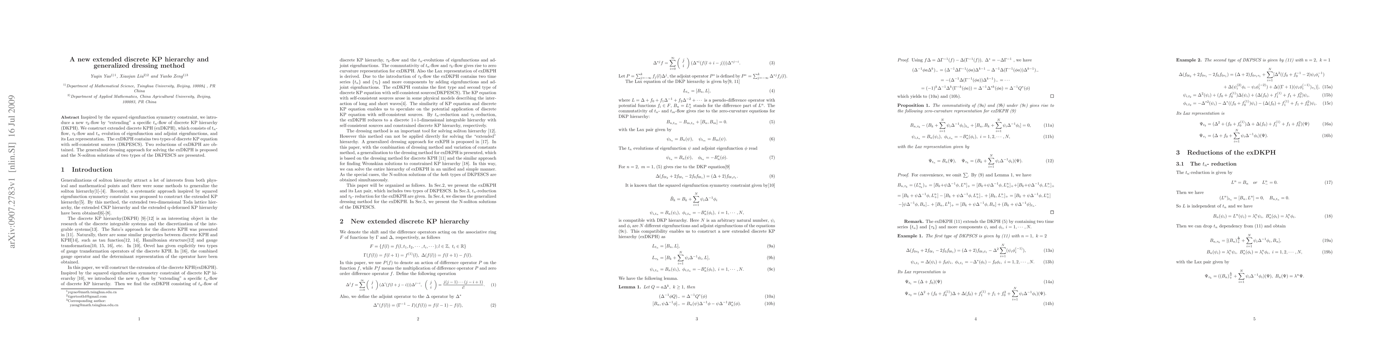 This paper introduces an extended discrete KP hierarchy (exDKPH) by adding a $\ta_k$-flow to a specific $t_n$-flow, and proposes a generalized dressing method to find N-soliton solutions for two types of associated discrete KP equations with self-consistent sources (DKPESCS).