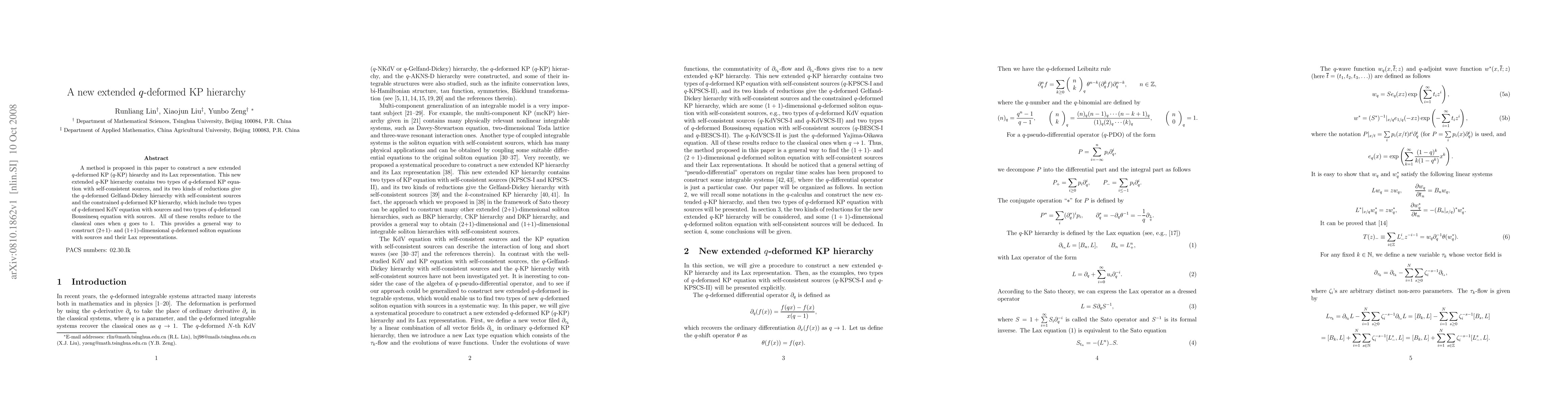 This paper introduces a novel method for constructing an extended q-deformed KP hierarchy and its Lax representation, including two types of q-deformed KP equations with self-consistent sources, which reduce to classical forms as $q$ approaches 1.