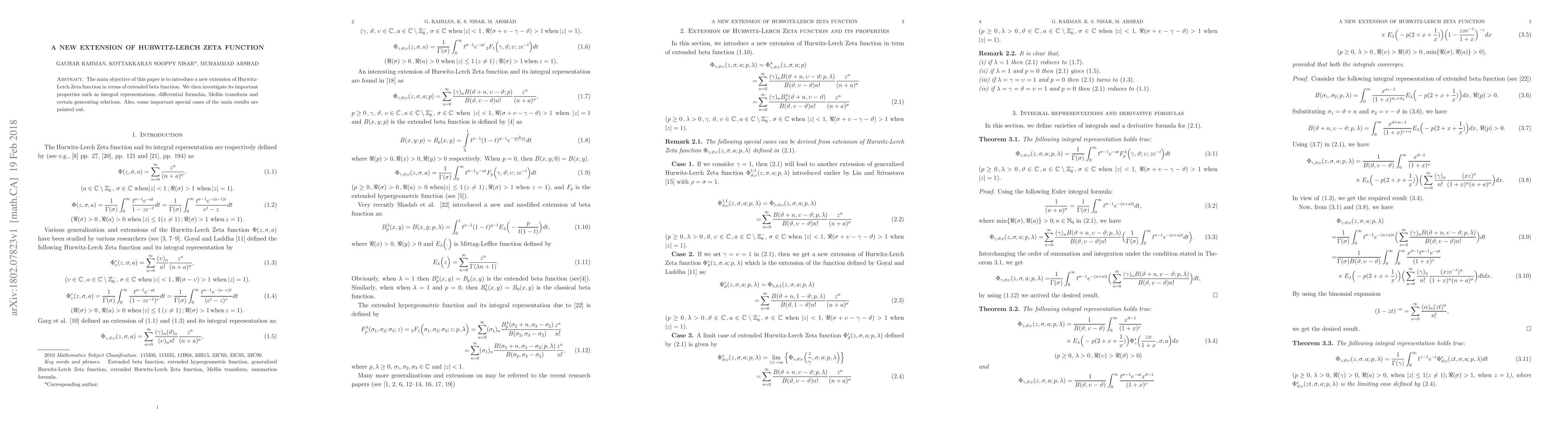 This paper introduces a new extension of the Hurwitz-Lerch Zeta function using the extended beta function, and explores its integral representations, differential formulas, Mellin transform, and generating relations. Special cases of the results are also highlighted.
