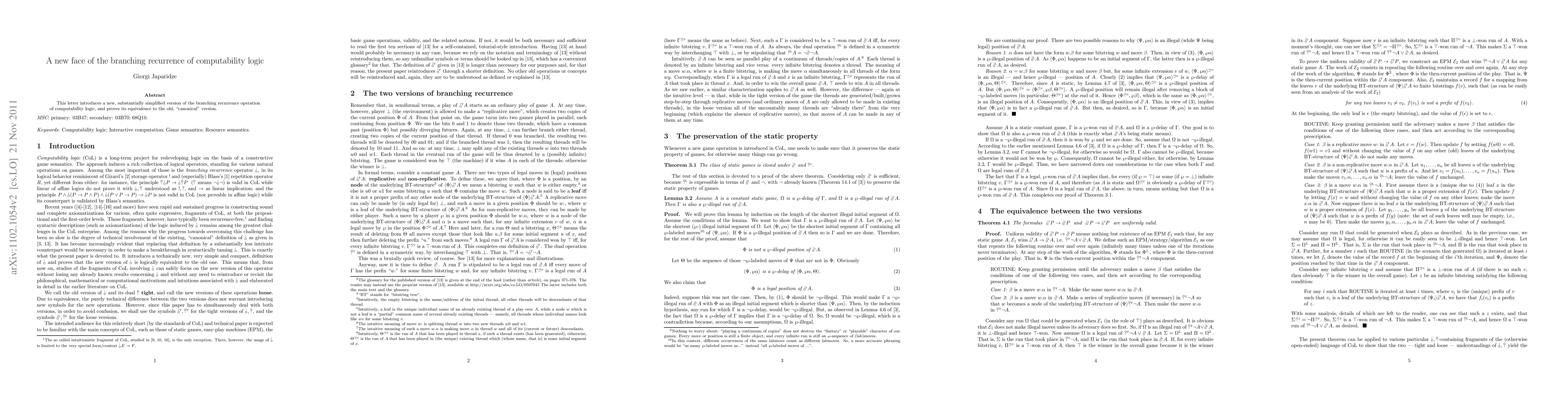 This paper presents a simplified version of the branching recurrence operation in computability logic, demonstrating its equivalence to the original, more complex version. The new method aims to enhance the understanding and application of computability logic.