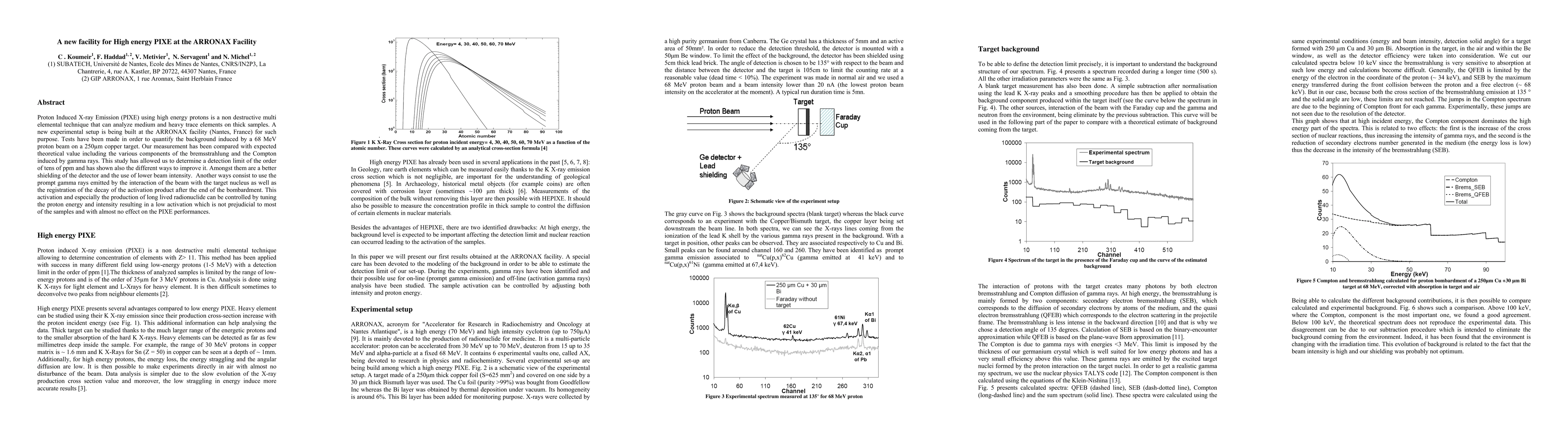 Proton Induced X-ray Emission (PIXE) using high energy protons is a non destructive multi elemental technique that can analyze medium and heavy trace elements on thick samples. A new experimental setup is being built at the ARRONAX facility (Nantes, France) for such purpose. Tests have been made in order to quantify the background induced by a 68 MeV proton beam on a 250\mu m copper target. Our measurement has been compared with expected theoretical value including the various components of the bremsstrahlung and the Compton induced by gamma rays. This study has allowed us to determine a detection limit of the order of tens of ppm and has shown also the different ways to improve it. Amongst them are a better shielding of the detector and the use of lower beam intensity. Another ways consist to use the prompt gamma rays emitted by the interaction of the beam with the target nucleus as well as the registration of the decay of the activation product after the end of the bombardment. This activation and especially the production of long lived radionuclide can be controlled by tuning the proton energy and intensity resulting in a low activation which is not prejudicial to most of the samples and with almost no effect on the PIXE performances.