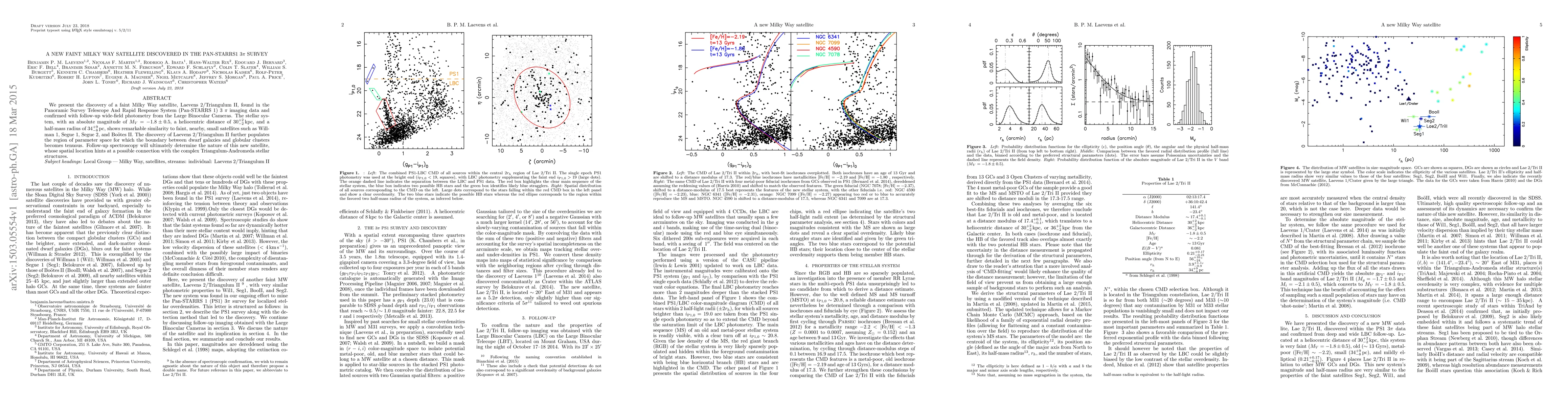 This paper reports the discovery of Laevens 2/Triangulum II, a faint Milky Way satellite found in Pan-STARRS1 data and confirmed with Large Binocular Telescope observations. The satellite's similarity to other small, nearby dwarf galaxies suggests it may blur the line between dwarf galaxies and globular clusters.