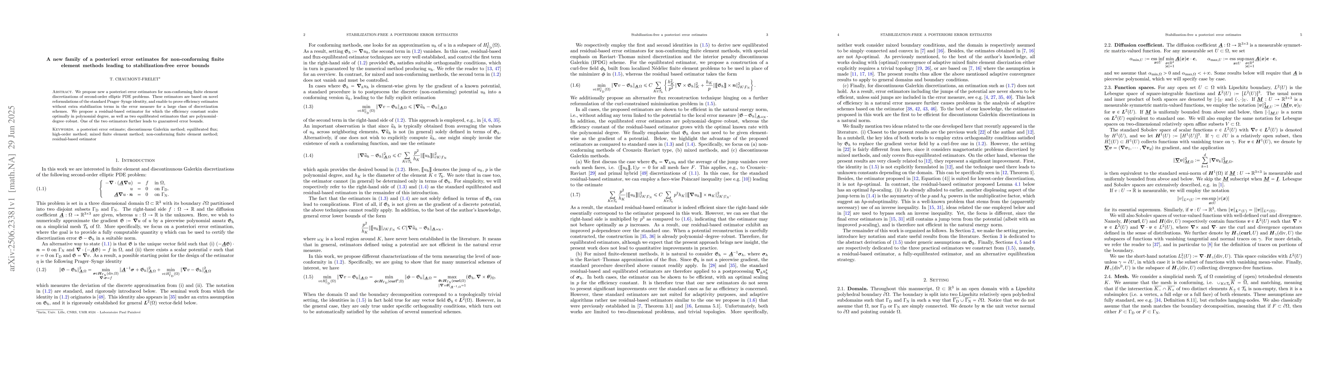 We propose new a posteriori error estimators for non-conforming finite element discretizations of second-order elliptic PDE problems. These estimators are based on novel reformulations of the standard Prager-Synge identity, and enable to prove efficiency estimates without extra stabilization terms in the error measure for a large class of discretization schemes. We propose a residual-based estimator for which the efficiency constant scales optimally in polynomial degree, as well as two equilibrated estimators that are polynomial-degree-robust. One of the two estimators further leads to guaranteed error bounds.