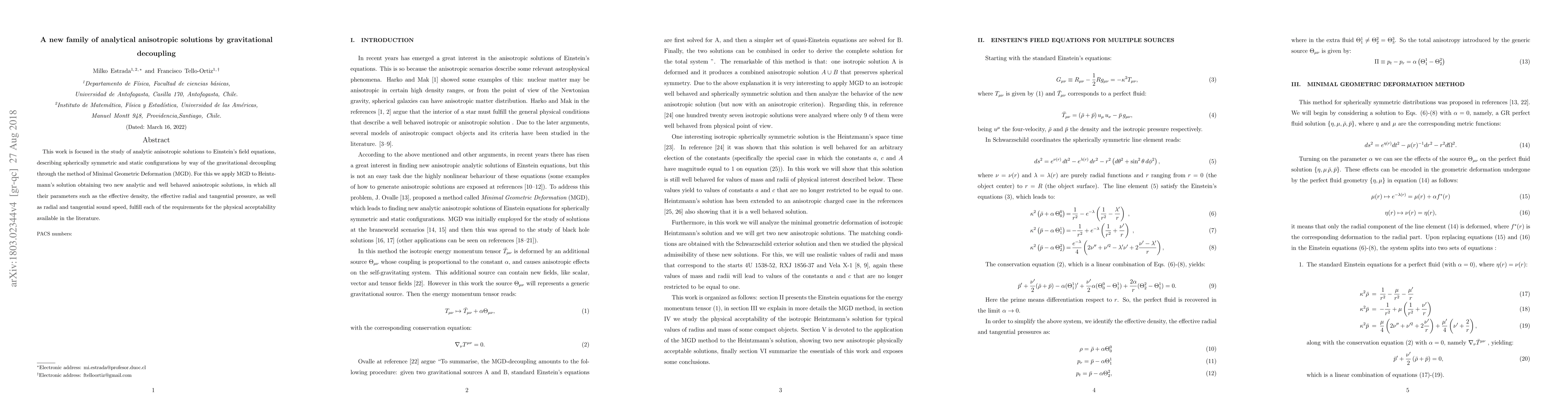 This paper presents new analytical anisotropic solutions to Einstein's field equations using gravitational decoupling via the Minimal Geometric Deformation method, specifically applied to Heintzmann's solution, yielding physically acceptable parameters.