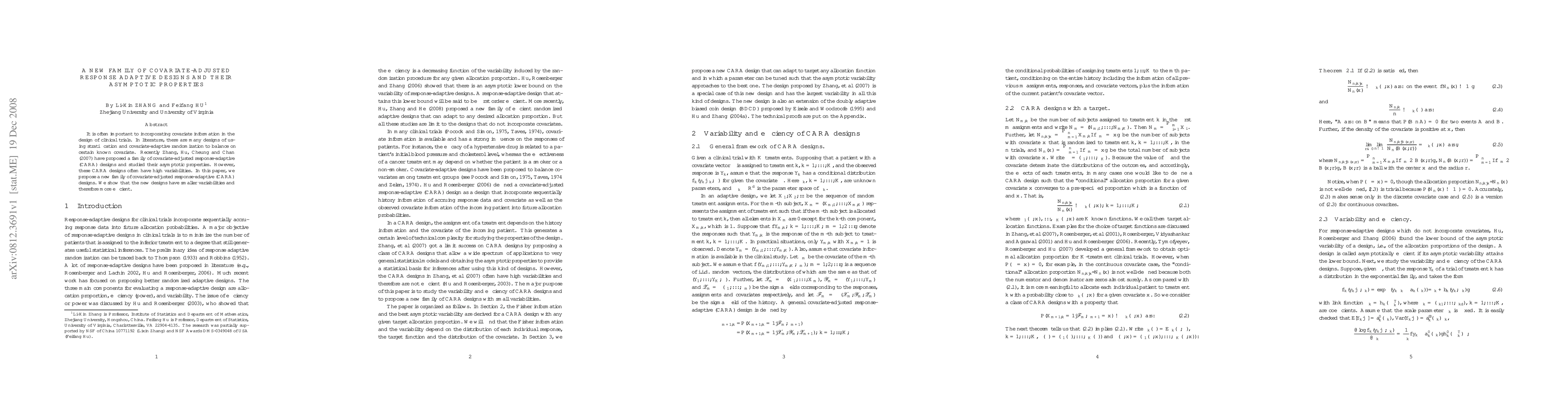 The research proposes a new family of covariate-adjusted response-adaptive (CARA) designs, building upon the doubly adaptive biased coin design (BDCD) by Hu and Zhang (2004a). These designs aim to efficiently incorporate covariate information in clinical trial designs.