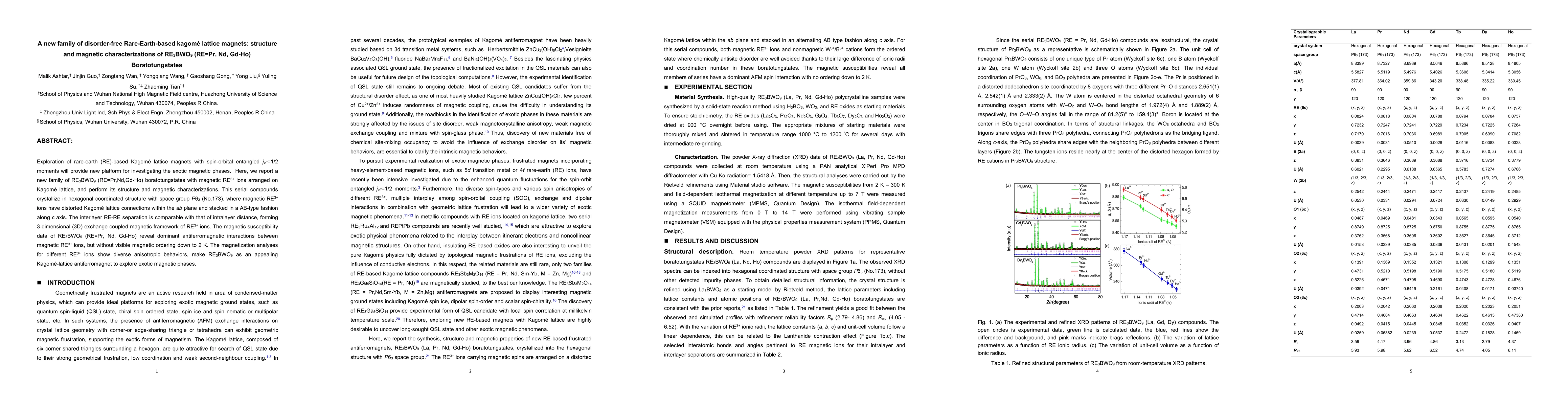 This paper introduces a new series of rare-earth boratotungstates RE3BWO9 (RE=Pr, Nd, Gd-Ho) with a Kagome lattice structure, characterized by magnetic susceptibility and magnetization analyses revealing antiferromagnetic interactions without magnetic ordering. The compounds exhibit diverse anisotropic behaviors, making them promising for studying exotic magnetic phases.