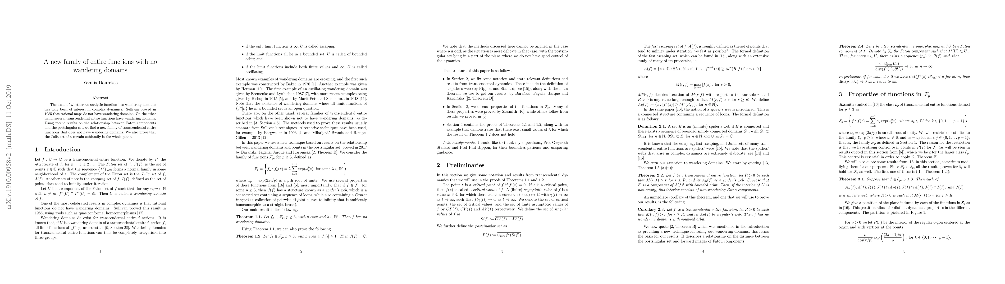 Summary: This paper introduces a novel family of transcendental entire functions that lack wandering domains, contrasting with previous findings on transcendental functions. Additionally, it demonstrates that the Julia set for a specific subfamily of these functions is the entire plane.