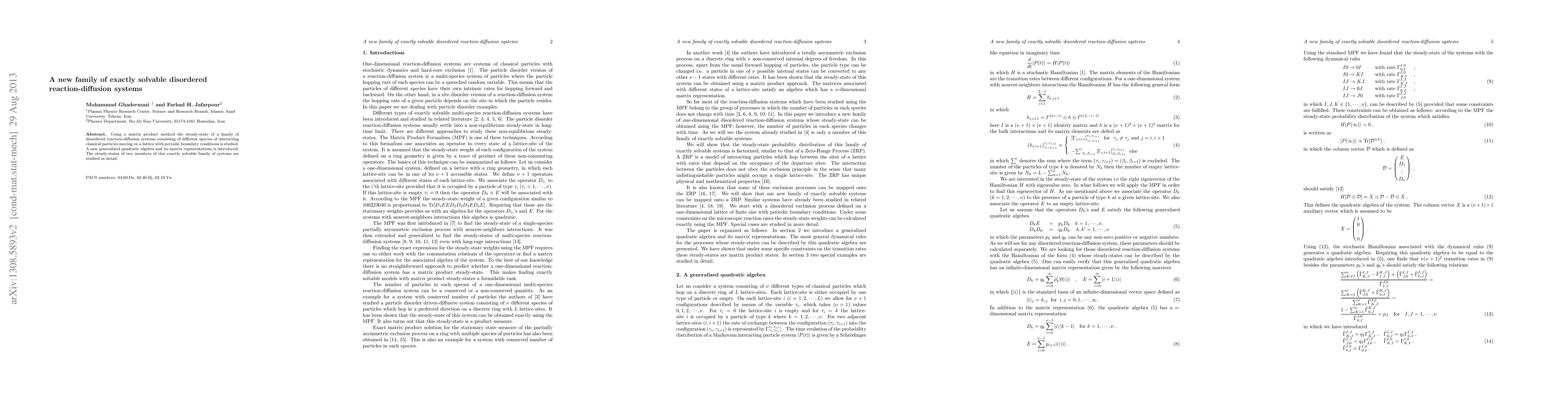 This paper introduces a new family of exactly solvable disordered reaction-diffusion systems using a matrix product method and a generalized quadratic algebra. Detailed analysis is provided for the steady-states of two specific systems within this family.