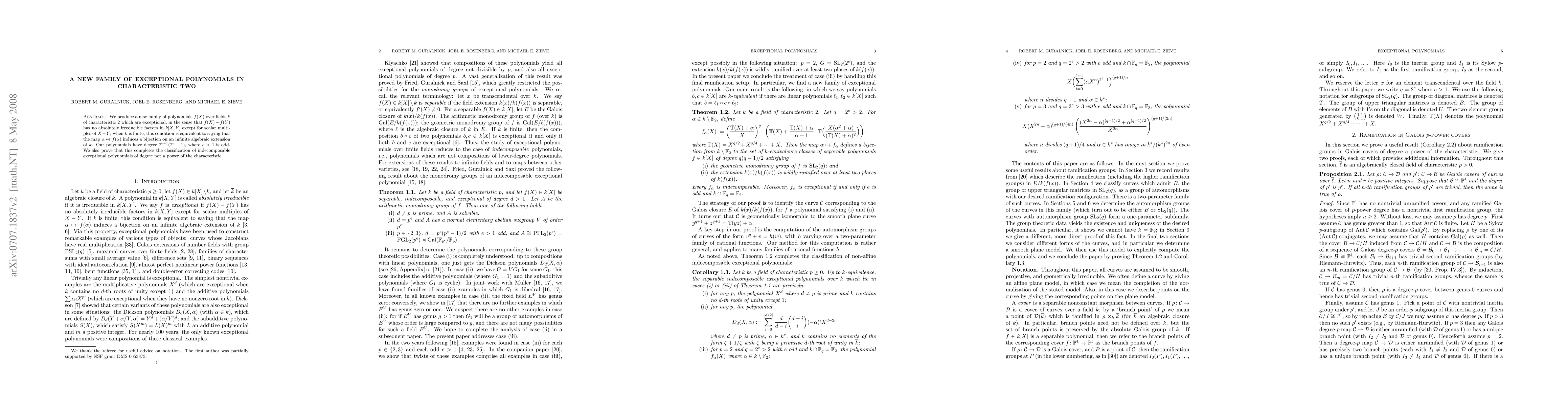 We produce a new family of polynomials f(x) over fields K of characteristic 2 which are exceptional, in the sense that f(x)-f(y) has no absolutely irreducible factors in K[x,y] besides the scalar multiples of x-y; when K is finite, this condition is equivalent to saying there are infinitely many finite extensions L/K for which the map c --> f(c) is bijective on L. Our polynomials have degree (2^e-1)*2^(e-1), where e is odd. Combined with our previous paper arxiv:0707.1835, this completes the classification of indecomposable exceptional polynomials of degree not a power of the characteristic. The strategy of our proof is to identify the curves that can arise as the Galois closure of the branched cover P^1 --> P^1 induced by an exceptional polynomial f. In this case, the curves turn out to be x^(q+1)+y^(q+1)=a+T(xy), where T(z)=z^(q/2)+z^(q/4)+...+z. Our proofs rely on new properties of ramification in Galois covers of curves, as well as the computation of the automorphism groups of all curves in a certain 2-parameter family.