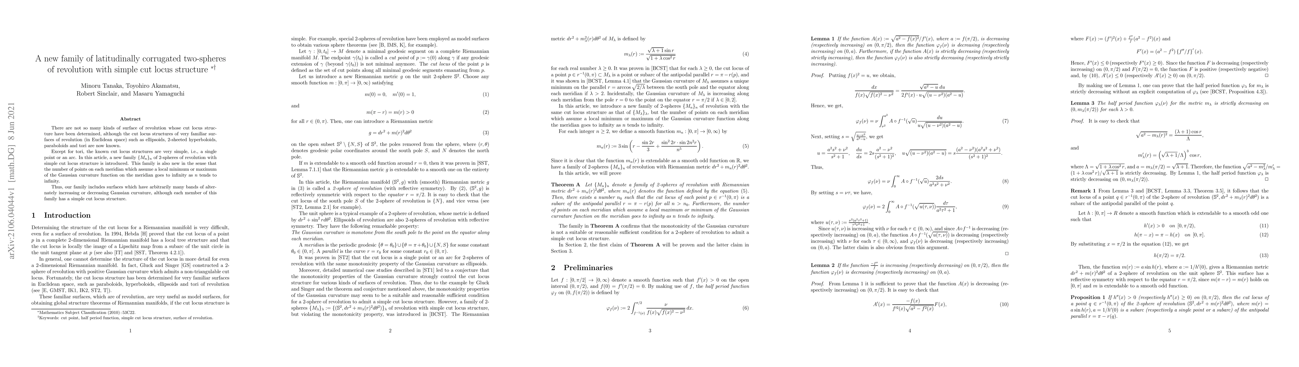 This paper introduces a new family of latitudinally corrugated two-spheres of revolution, denoted as {M_n}_n, that possess simple cut locus structures. Unlike other known surfaces, this family has an increasing number of points on each meridian where Gaussian curvature reaches local minima or maxima as n approaches infinity.