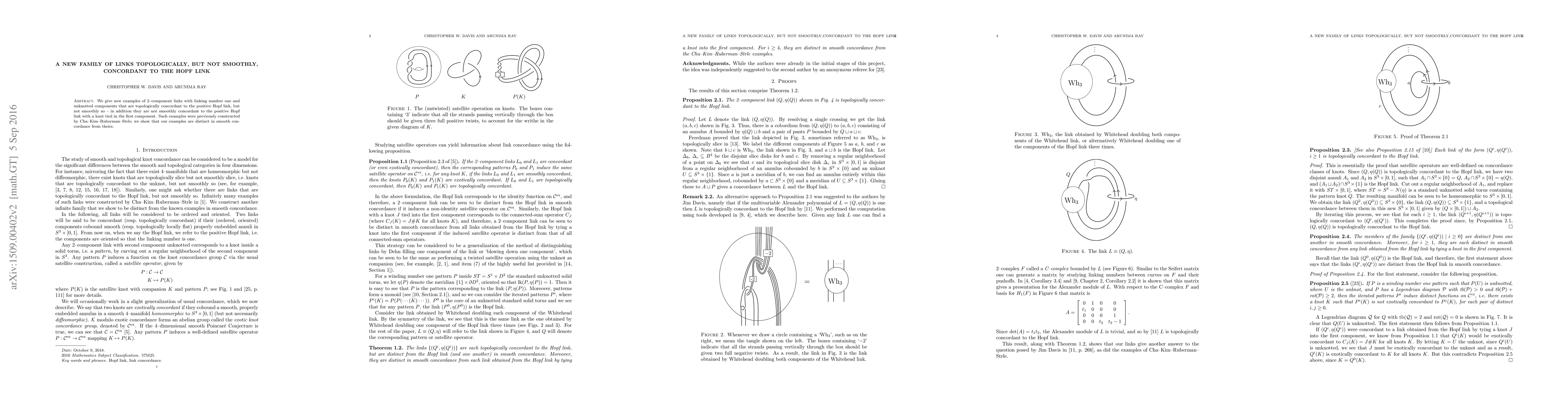 We give new examples of 2-component links with linking number one and unknotted components that are topologically concordant to the positive Hopf link, but not smoothly so - in fact they are not smoothly concordant to the positive Hopf link with a knot tied in the first component. Such examples were previously constructed by Cha-Kim-Ruberman-Strle; we show that our examples are distinct from theirs.