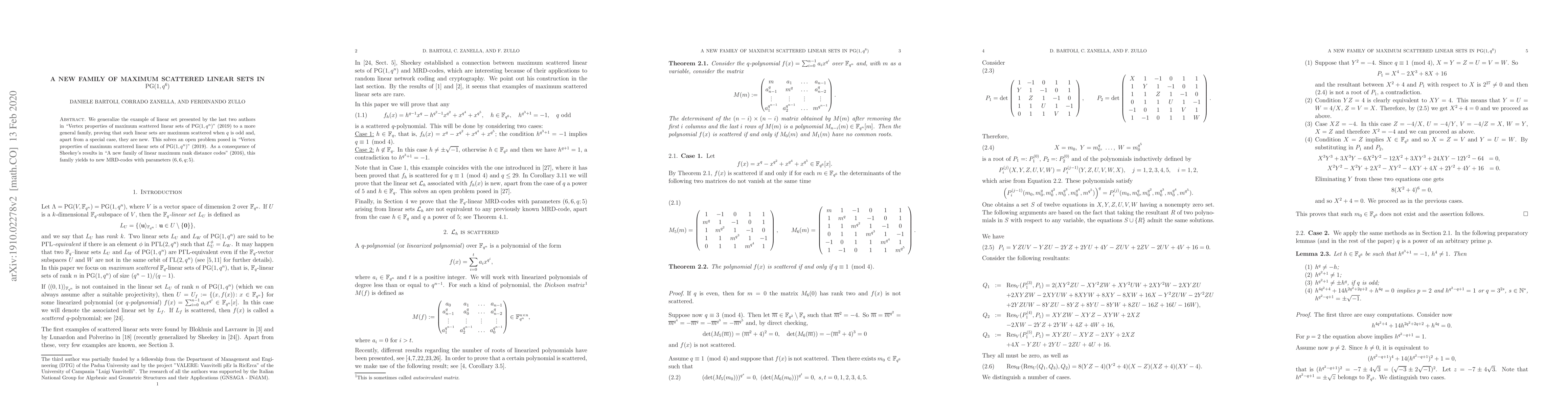 We generalize the example of linear set presented by the last two authors in "Vertex properties of maximum scattered linear sets of $\mathrm{PG}(1,q^n)$" (2019) to a more general family, proving that such linear sets are maximum scattered when $q$ is odd and, apart from a special case, they are are new. This solves an open problem posed in "Vertex properties of maximum scattered linear sets of $\mathrm{PG}(1,q^n)$" (2019). As a consequence of Sheekey's results in "A new family of linear maximum rank distance codes" (2016), this family yields to new MRD-codes with parameters $(6,6,q;5)$.