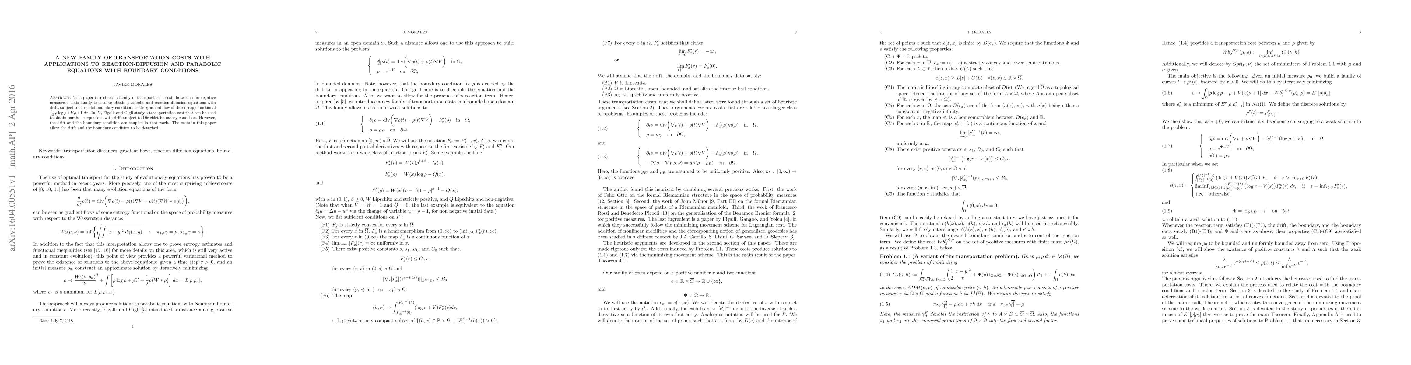 This paper introduces a family of transportation costs between non-negative measures. This family is used to obtain parabolic and reaction-diffusion equations with drift, subject to Dirichlet boundary condition, as the gradient flow of the entropy functional $\int_{\Omega}\rho\log\rho+V\rho+1\hspace{1mm}dx$. In 2010, Alessio Figalli and Nicola Gigli introduced a transportation cost that can be used to obtain parabolic equations with drift subject to Dirichlet boundary condition. However, the drift and the boundary condition are coupled in their work. The costs in this paper allow the drift and the boundary condition to be detached.